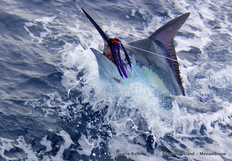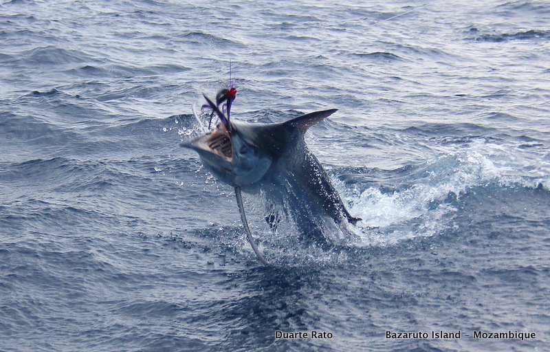 But now, It was now Carmen´s turn in the chair and altough we seeing a good number of Marlin, the lack of big girls as been surprising. But, at last, this afternoon as we worked the lures around a school of baitfish up north a really nice one showed up behind the long left lure. It come up on the lure 4 times, bill, head and shoulders out the water. We had a real good look and the fish was easy 850 + lbs. On the forth time I almost stopped the boat and the fish inhaled the lure and took off. Unfortunetly as we were briging in the other lines the fish pulled the hooks. Really sad but always good to see such a nice fish…