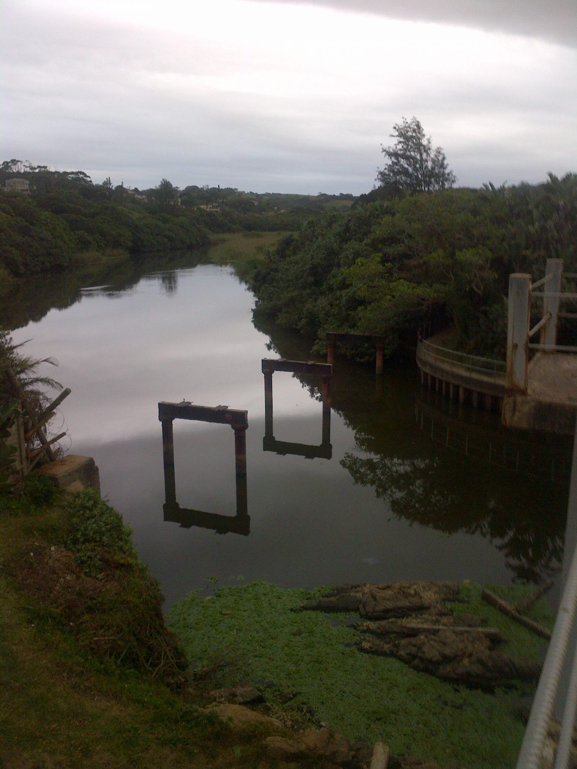 Well, the accompanying photos still show that the stuff is full up in the corner at the mouth, but exists now at a fraction of what it was, when we first raised the alarm. Most of the blind estuary on the inside of the bridge is clear, pistia can only be seen skirting the edges.