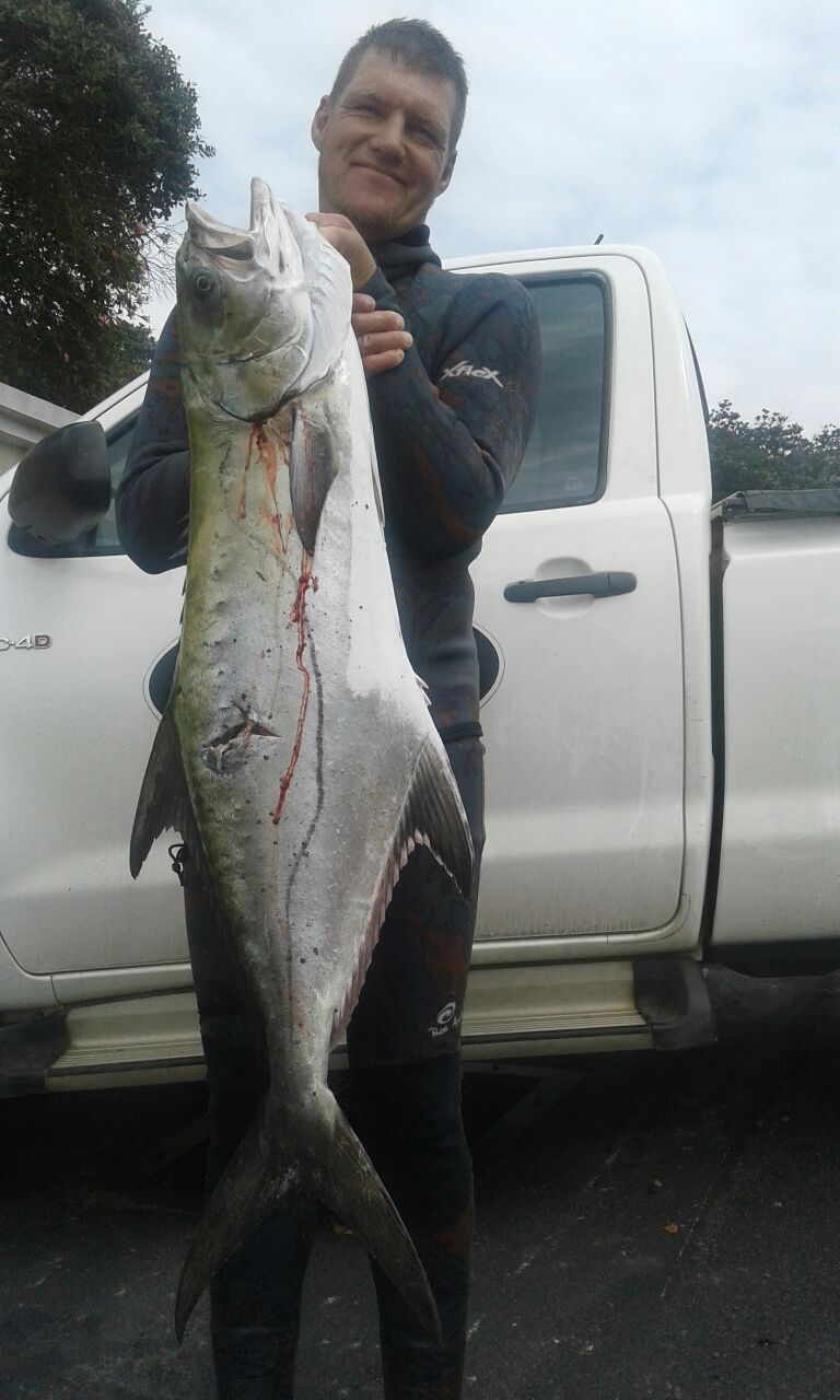 The diving conditions this week have been below average with one or two good days. A huge low pressure system has moved in and the sea is literally on its head today (Friday). Brusher have started making an appearance and the usual suspects (garrick, snook, couta and daga salmon) are around. Saturday morning the south West continues to blow dropping off during the day with the swell running at 3m dropping off to 2m late in the day. Sunday morning a light offshore wind blows switching to a moderate north east later in the day with the swell running at 1.8m. Viz was reported south today. So it looks like Sunday morning may be diveable. Well done Peter Jacobs on getting fish of the week a very respectable garrick of 16.8kg! As always dive safe and straight spears