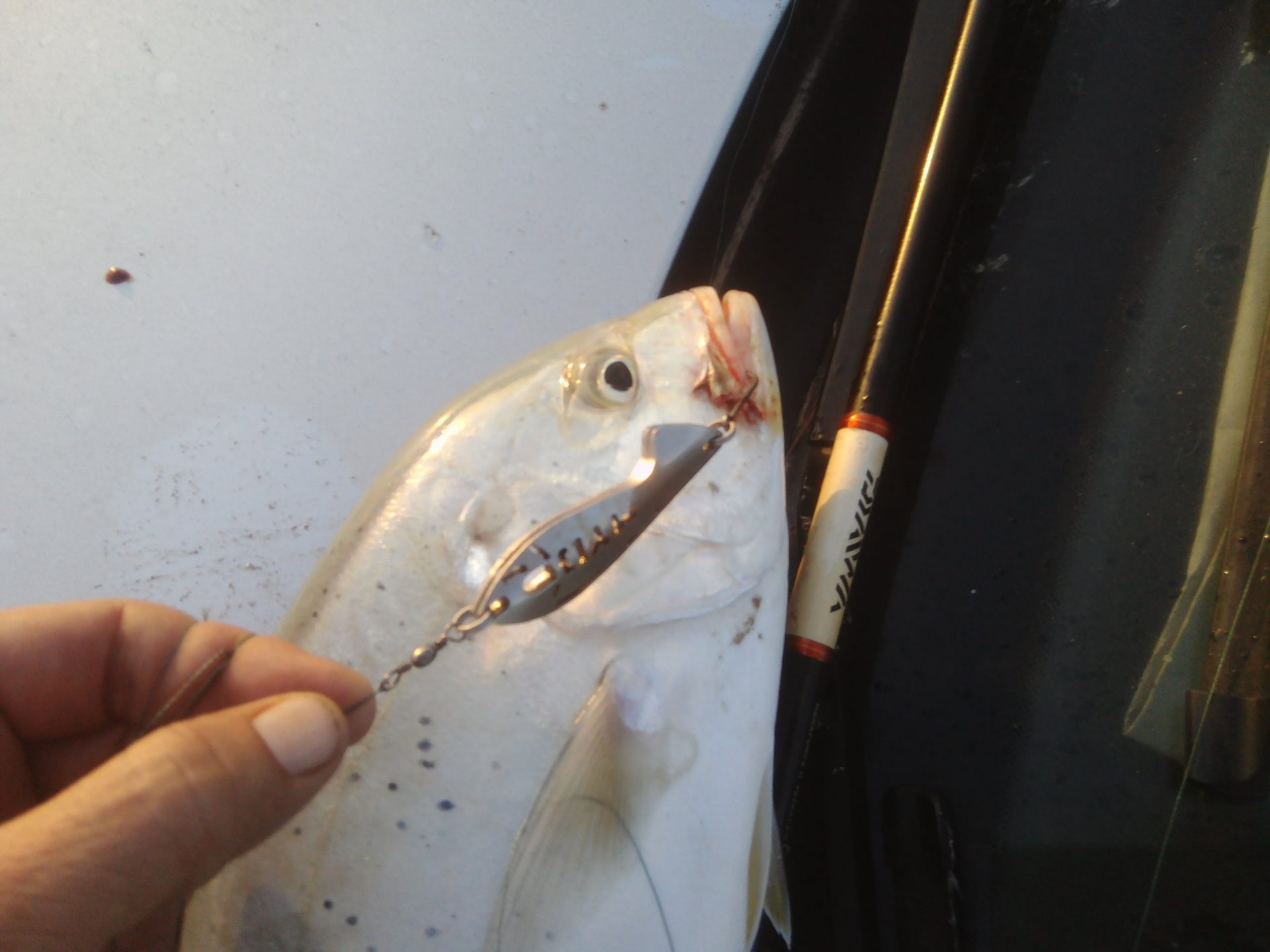 So when on my 20th cast, as the spoon splashed its way towards the rock ledge, in between waves, the kingfish smashed me real hard, I thought it was another big guy! Luckily it wasn’t. It was rather, a feisty and stubborn Brassy Trevally, which gave the run around for a few minutes.