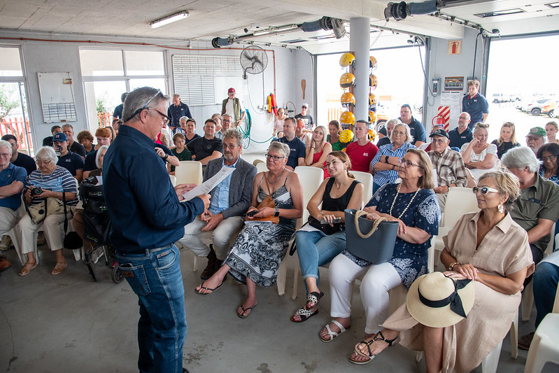 The new vessel was officially named Film Industry Rescuer 3 during a traditional ceremony by Marna Riek, wife of Rudi Riek. The vessel and the Station 18 volunteer crew were blessed by Pastor Barend Buys in a heartfelt prayer that reflected community gratitude.