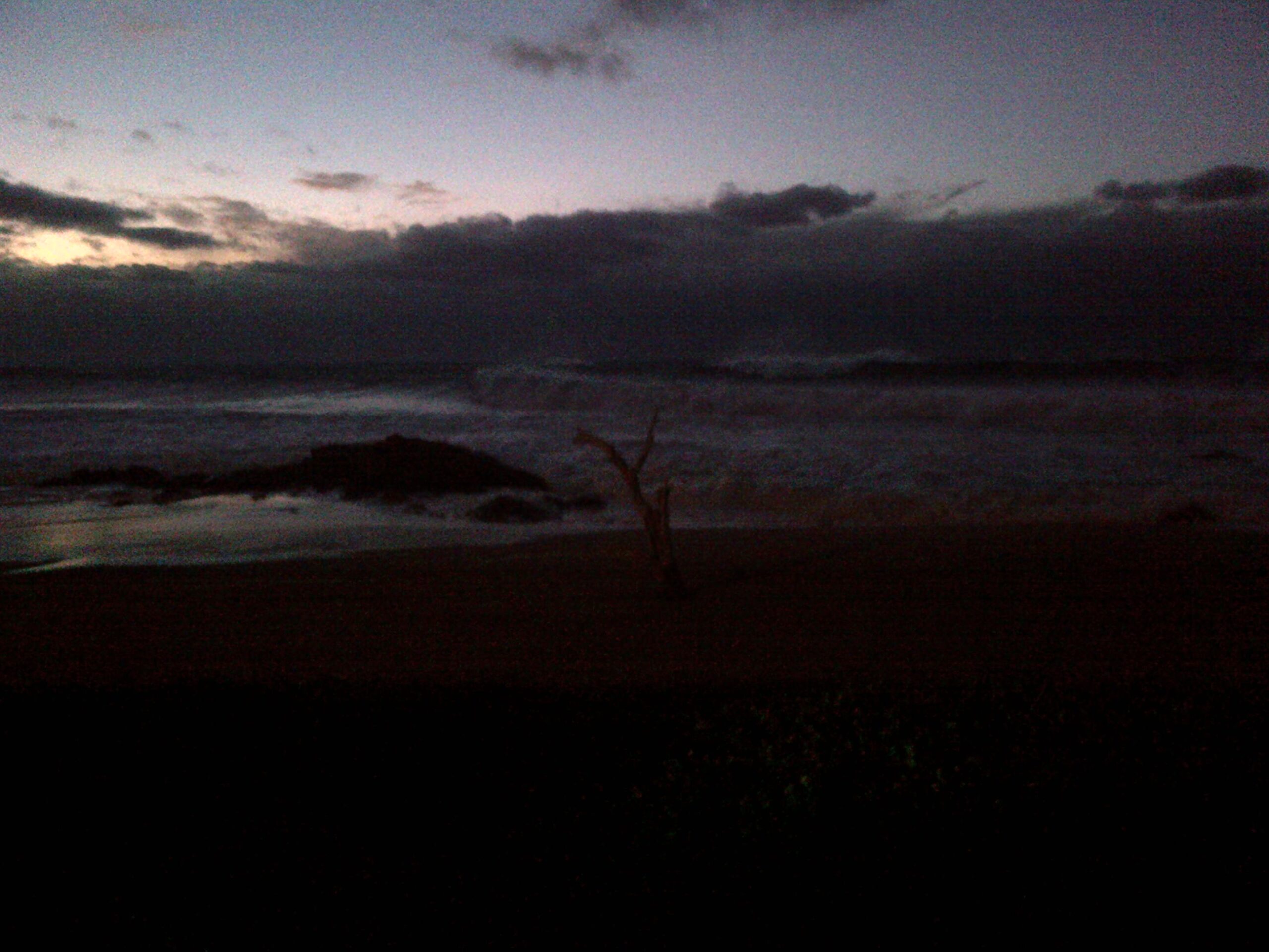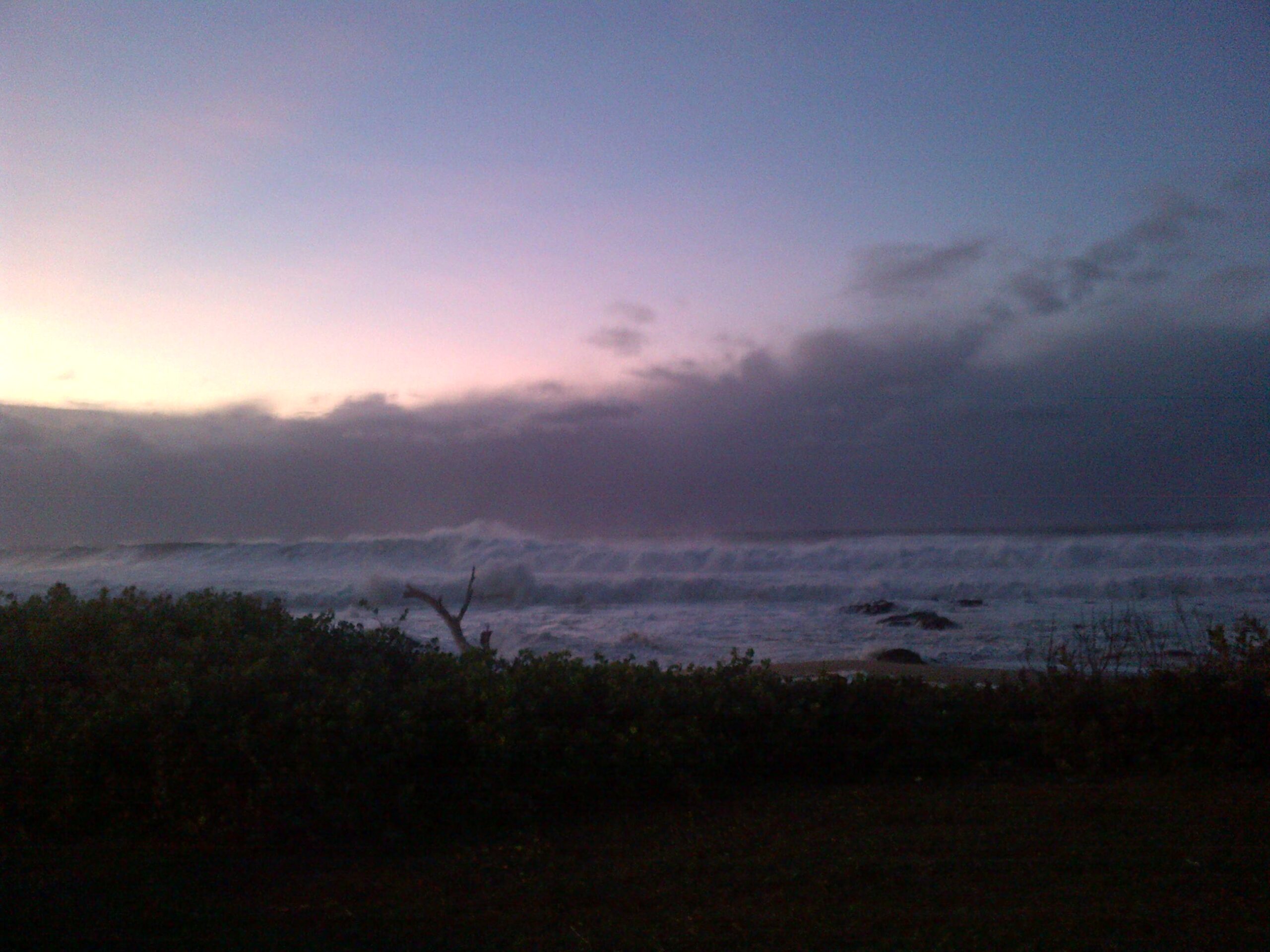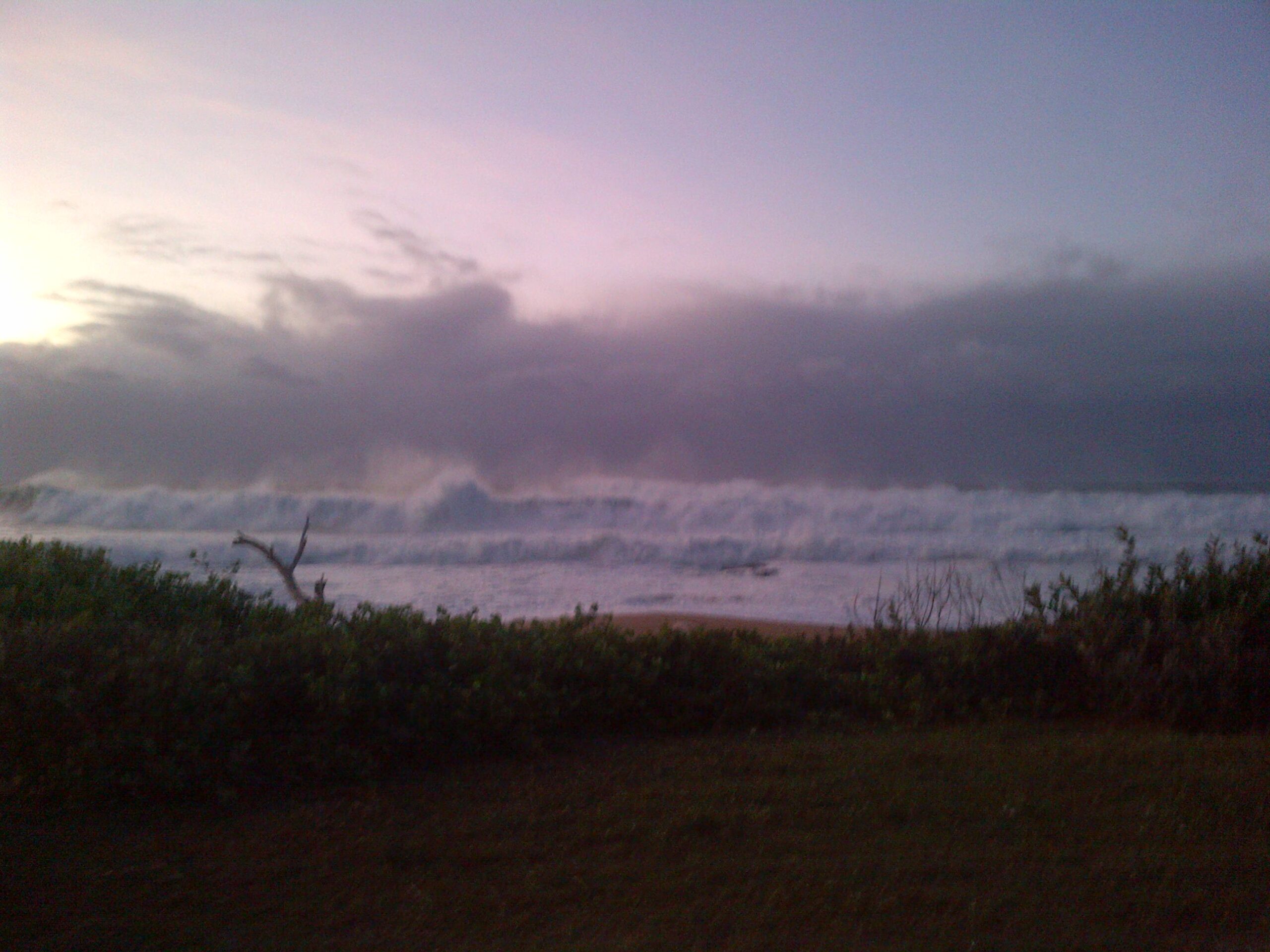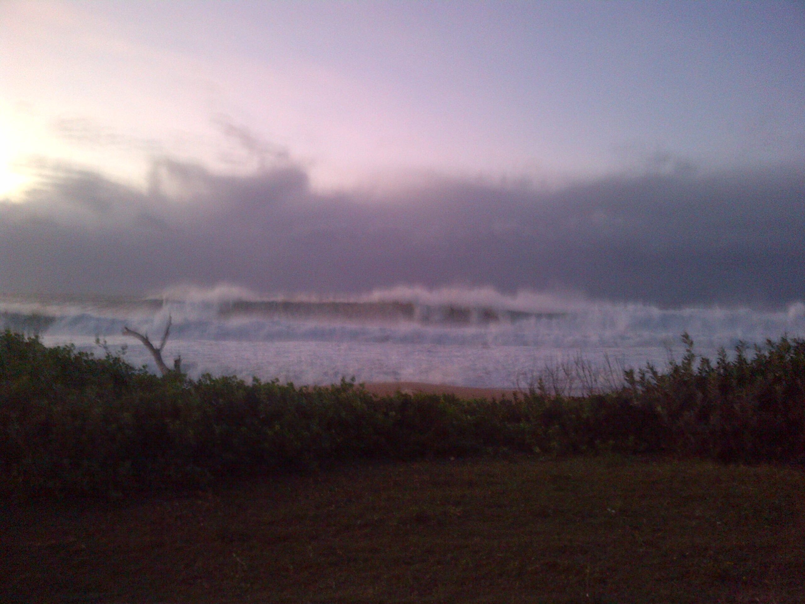 Luckily it’s not as big as The Tides of March swell, but it’s up there. The surge from the set turned the bay and channel into a maelstrom but never made it up the pathway. With Roosta’s Hawaii experience, it was good to guage his reaction, as a reference to that place.