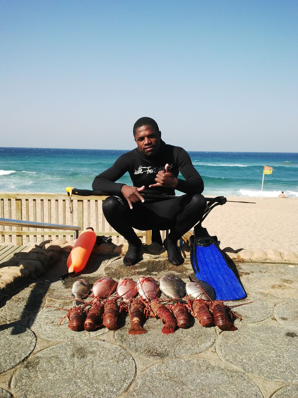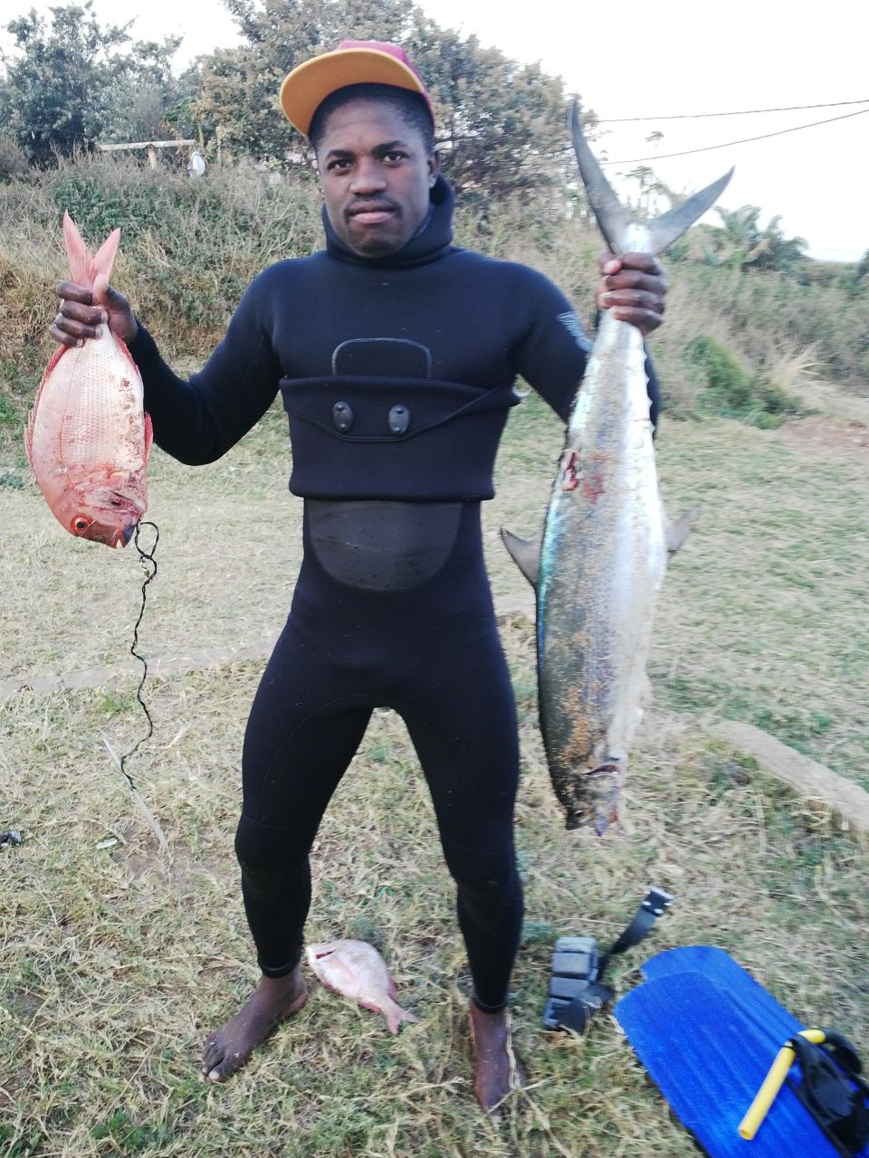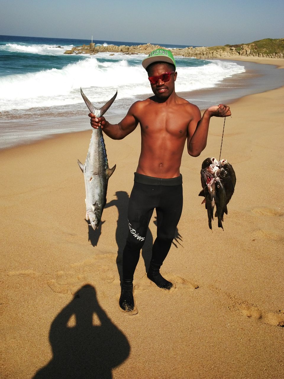 Scelo Cele, lifeguard at Hibberdene’s Blue Flag beach, get’s lots of opportunities to get out there and shoot or catch some fish. He wastes no chances either, as can be seen from these photographs of Scelo and his catches, from this last week.