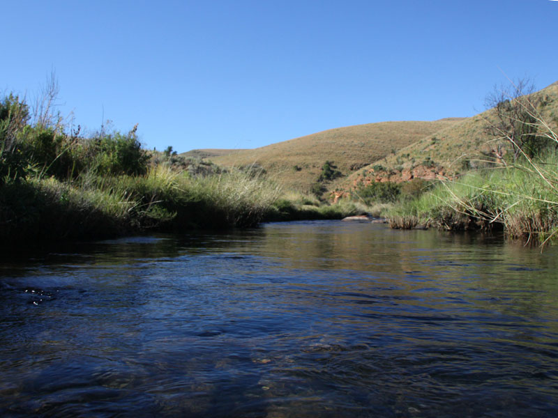 Driving a little further into nature leads you to The Highland Run Trout Estate. A handsome escape, set in a magnificent piece of the Drakensberg. And right on the Spekboom River.
