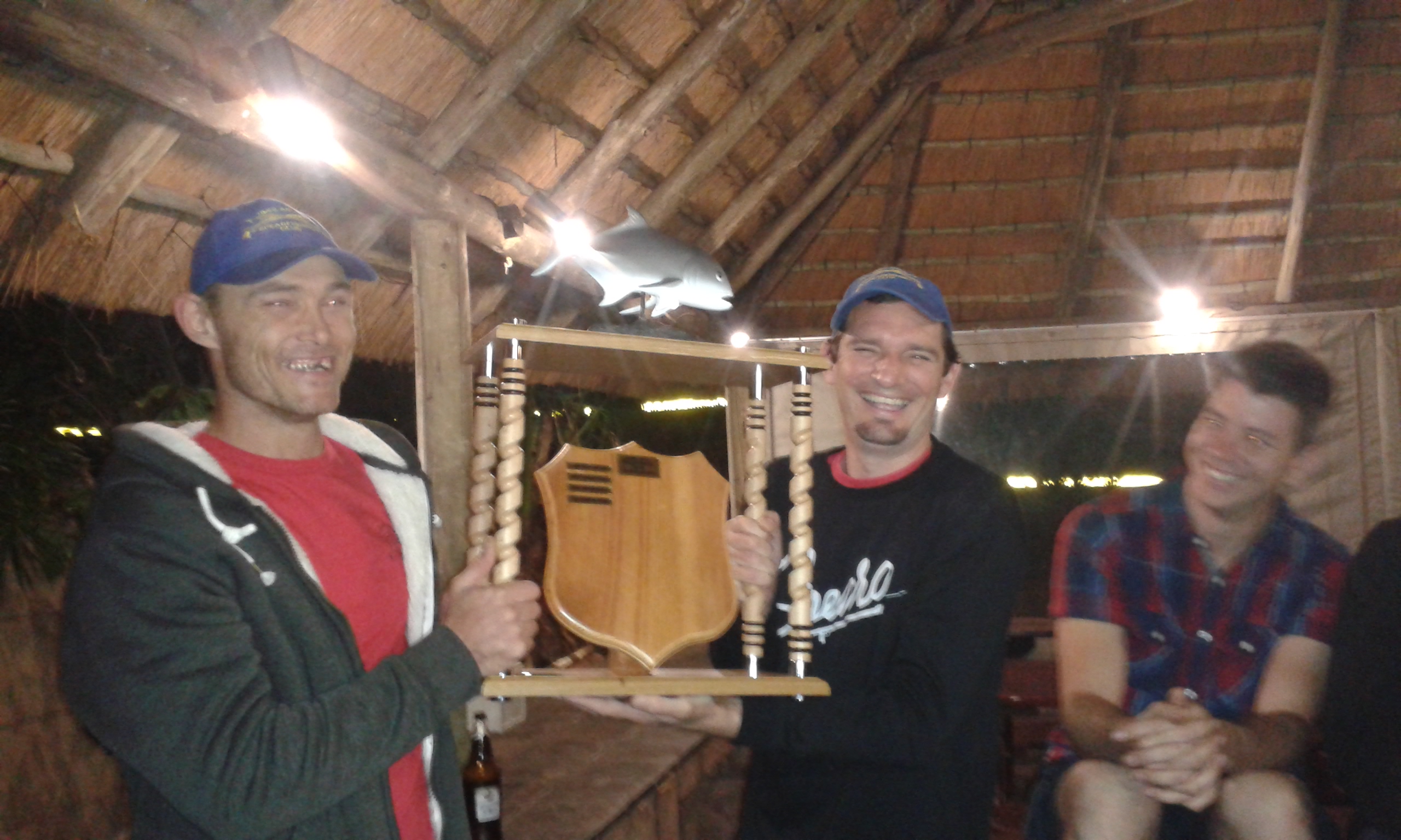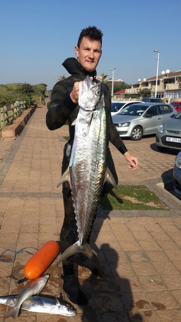 Average diving conditions this week with a bit of swell churning the inshore up. Lower south coast and the kei have been very clean. Decent size garrick are coming out north and south coast. Snoek middle south coast and north coast. A big cuda was lost on the lower south coast and I managed to plant a decent shot in a large wahoo today but after stripping the gun reel and 2m off the belt reel it came off. Tricky fish to land! There is a buster of a north east predicted early Saturday morning with some swell. South coast will probably be diveable come Sunday. Guys and gals please be aware that there is a dead whale at zinkwazi attracting some very large sharks so please don’t dive in the area! Alex from the club had a 3m great white come have a look at his crayfish skills at umtwalume this morning. We had a great club meeting last night and the revamped club champs trophy was presented to Andrew Mcdonald. Thanks Dylan for the great work! As always dive safe and straight spears.