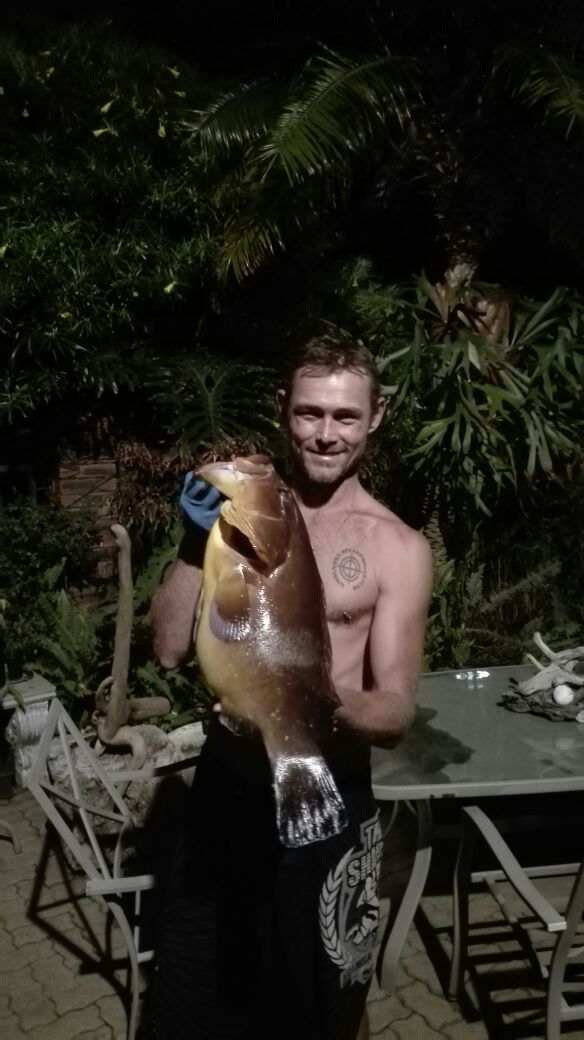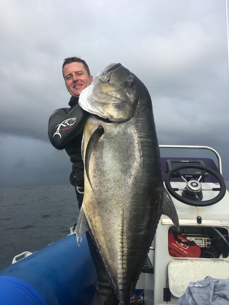 The diving conditions have been great this week but the water has been cold. The key to finding the fish is finding warmer water preferably 23 c plus. Some really decent GT’S and spannish mackerel are coming out.  Saturday a moderate southwest wind blows all day with the swell running at 1.6m. Sunday the southwest freshens early at 20knts plus gusts and a fair sized  2.5m swell . So Saturday looks good If you don’t mind the wind. Well done Lizzy one of our new lady members on getting club merit fish of the week with a fair sized yellow belly and well done Andrew getting fish of the week with a bus GT. As always dive safe and straight spears.