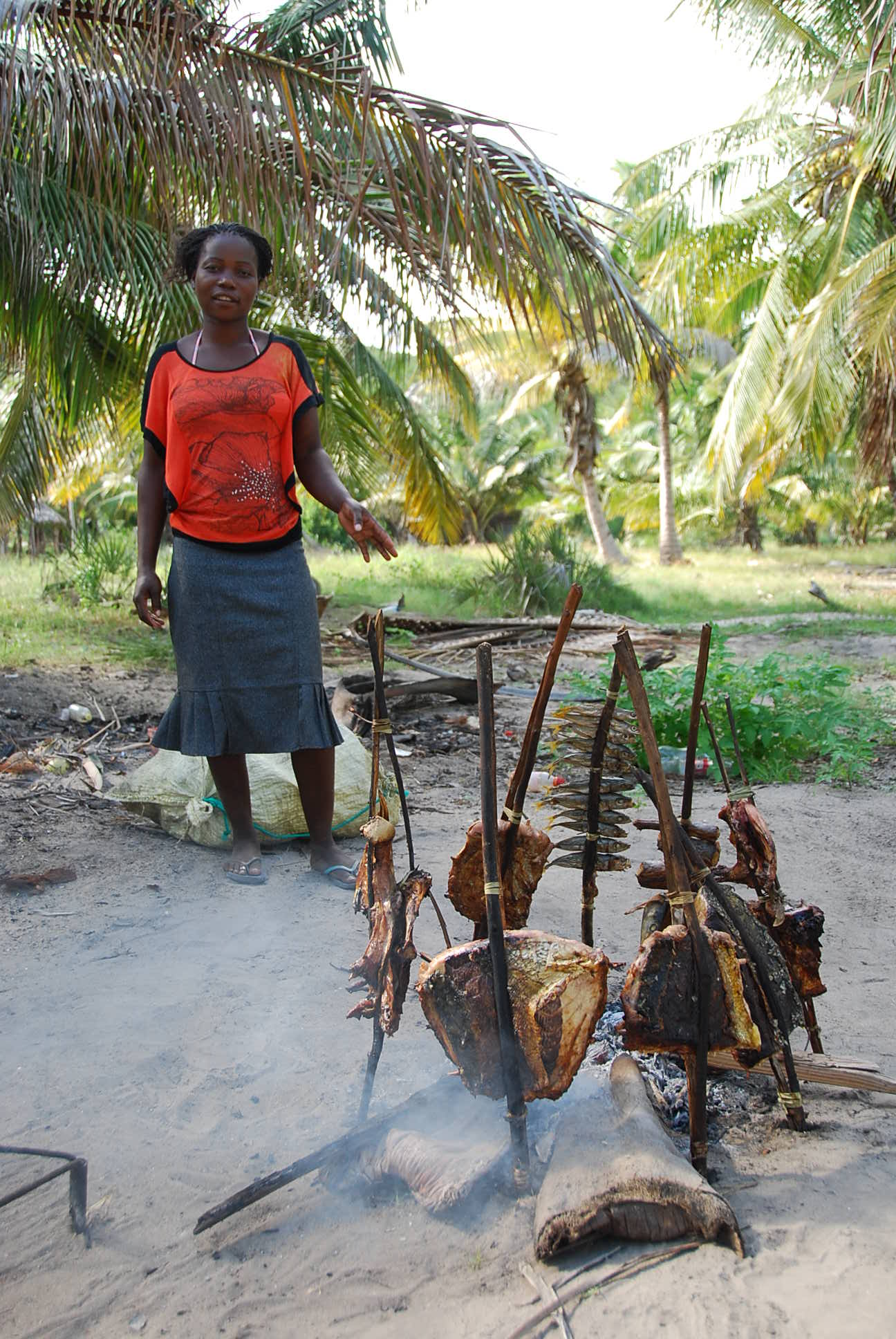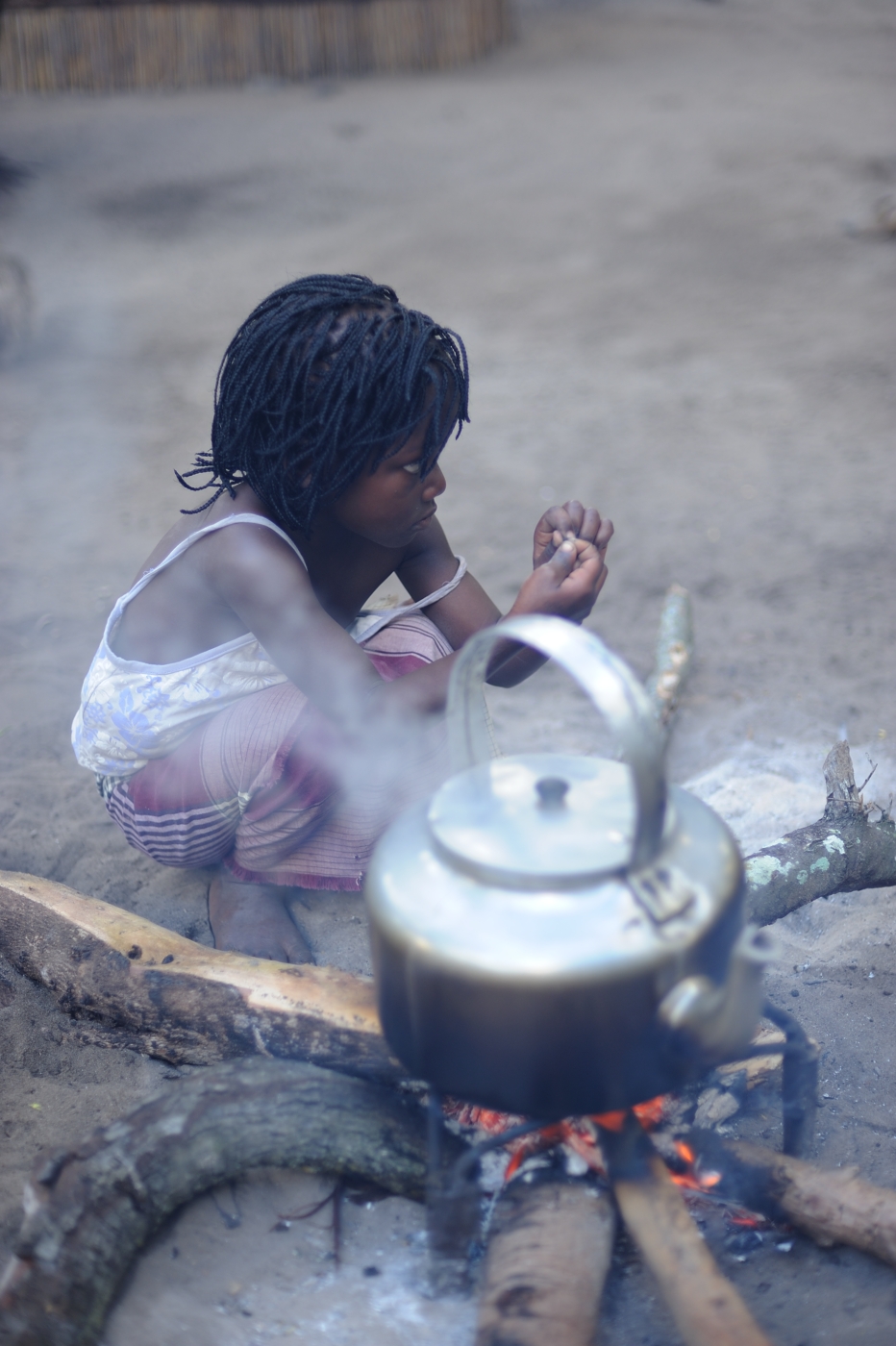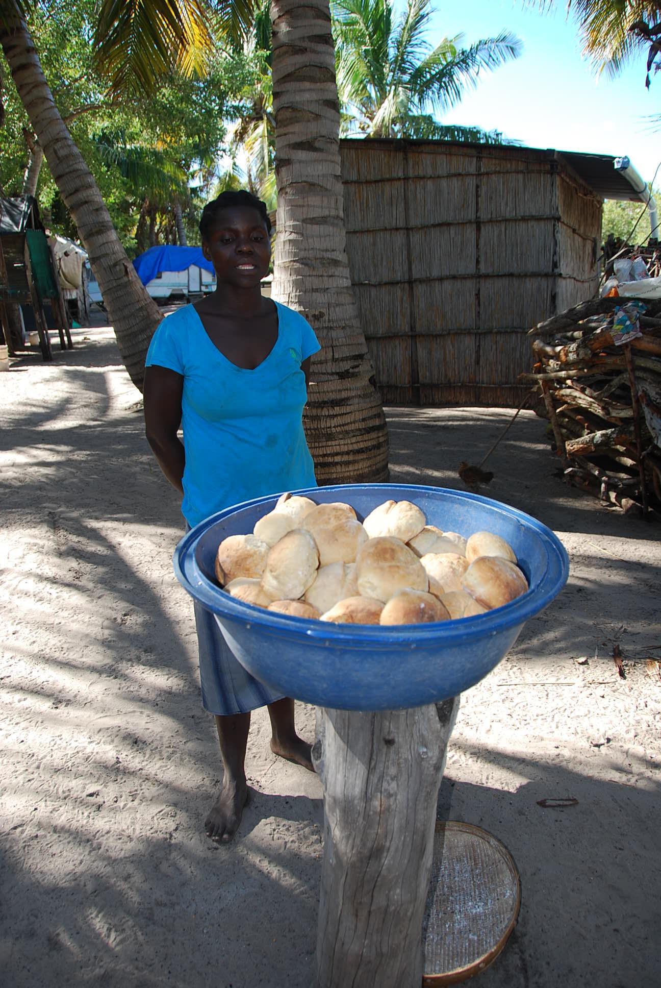 The village is about as big as a football field. Buildings of local reed and thatch material. All sprawled around Chief Sathane’s old concrete mansion – where he has presided for decades. Scattered around the village is the bakery (in a drum), fish drying racks, arts and craft shops, a bar with a fridge (generator power at night only) and many kids and dogs.