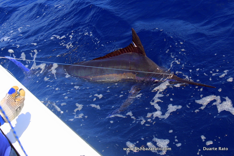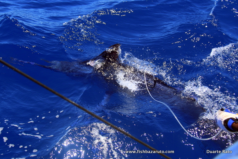 Over the last few years marlin research has been on top of Duarte’s priorities. He has believed that the nature of the behaviour of black marlin in the Bazaruto season, points to spawning. Duarte has observed the huge momma fish – the thousand pounders, being courted by a bunch of eager males, on many, many occasions. We have too, even last season we hooked a huge girl who threw the hook. The hapless bonito was chowed straight away after, by a smaller guy of about 300lbs. One of a dozen swimming with her. Check that video here.