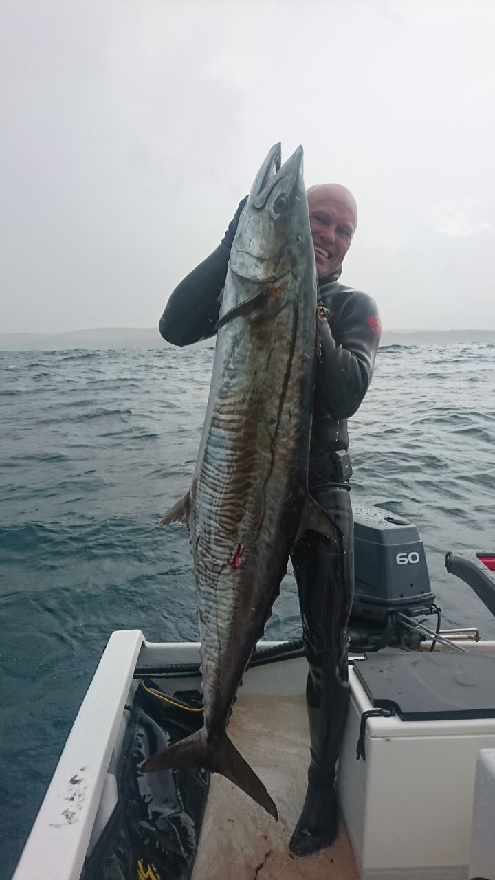 The forecast for this week looked great but it was not to be. Moderate south west wind nearly every day and solid surf and surge kept us out of the sea. There are some really large Croc couta around and the usual suspects snoek and garrick in the shallows. Saturday morning a north west offshore blows switching to a moderate north East after lunchtime with the swell at 1m picking up to 1.6m in the afternoon. Sunday morning the north east blows from early freshening during the day with the swell starting at 1.5m picking up to 2m late in the afternoon. So Saturday is green light for a dive. Fish of the week goes to Don with a Croc couta of a lifetime at 32.5kg. !!! As always dive safe and straight spears.