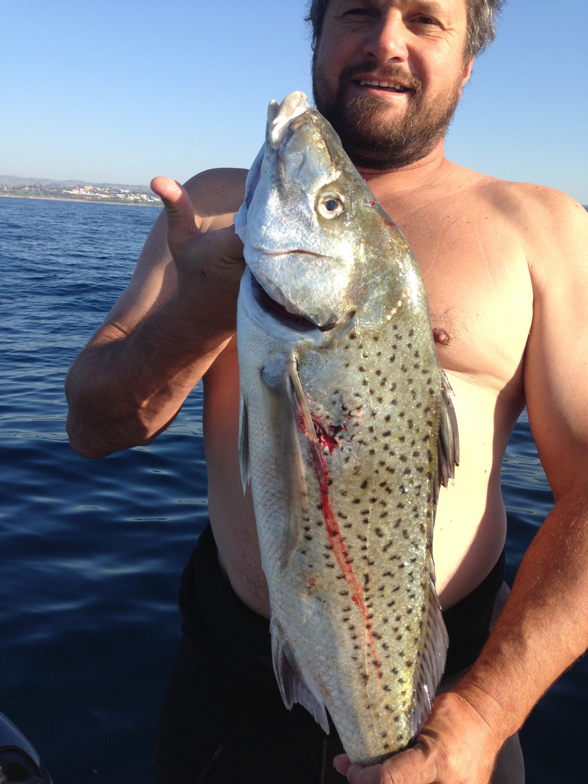 Darrell Hattingh has been having high adventures under water spearfishing the Hibberdene and Ifafa points. A Great White was spotted at Ifafa, a baby of about 3 metres.