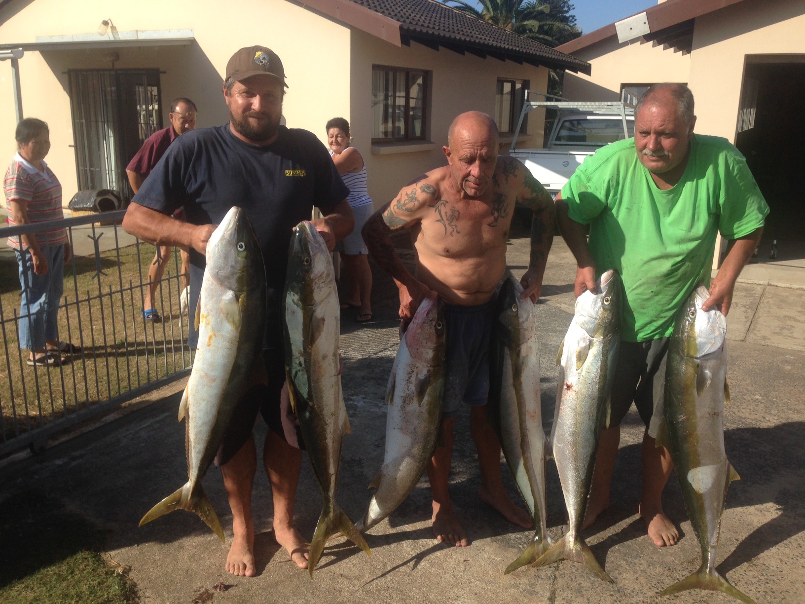 And in the next pics, my other brother Darrell, I mean Marc, with Koos and Andre Viviers and a bunch of nice fish, mostly caught, but the grunter shot off Chakas right up from the Sandspit.