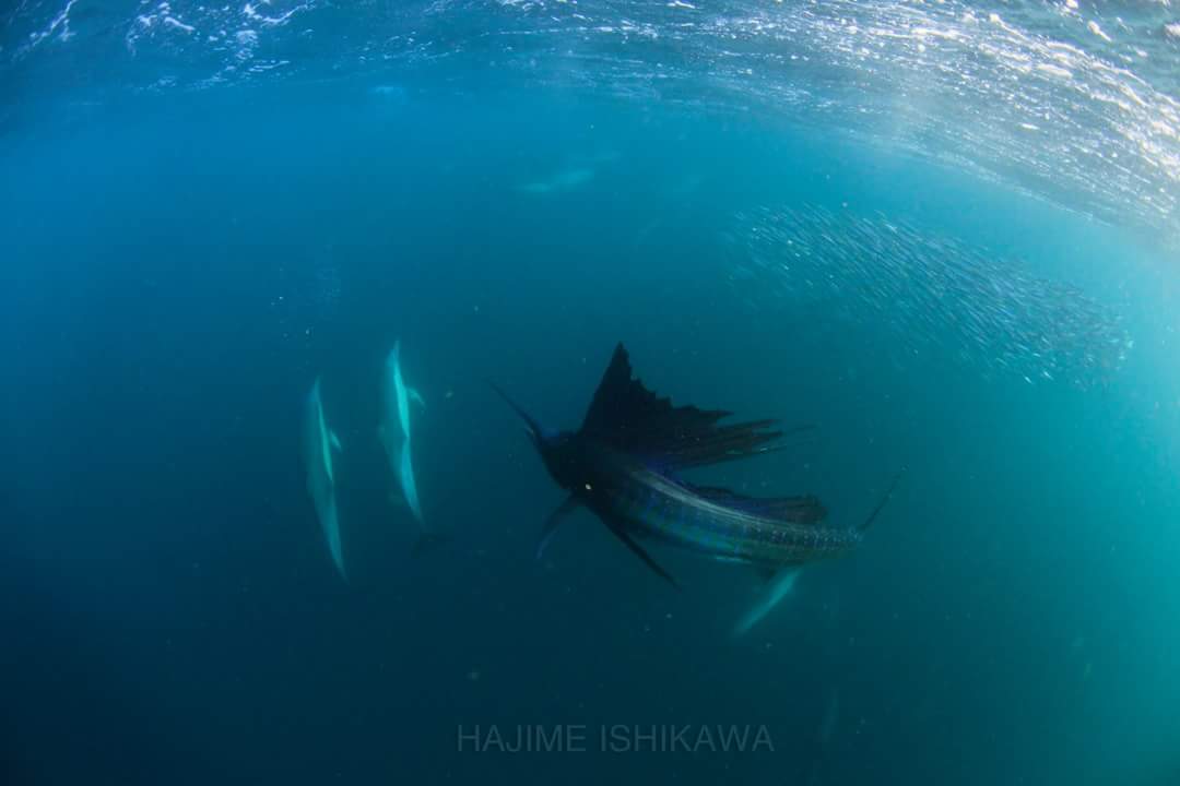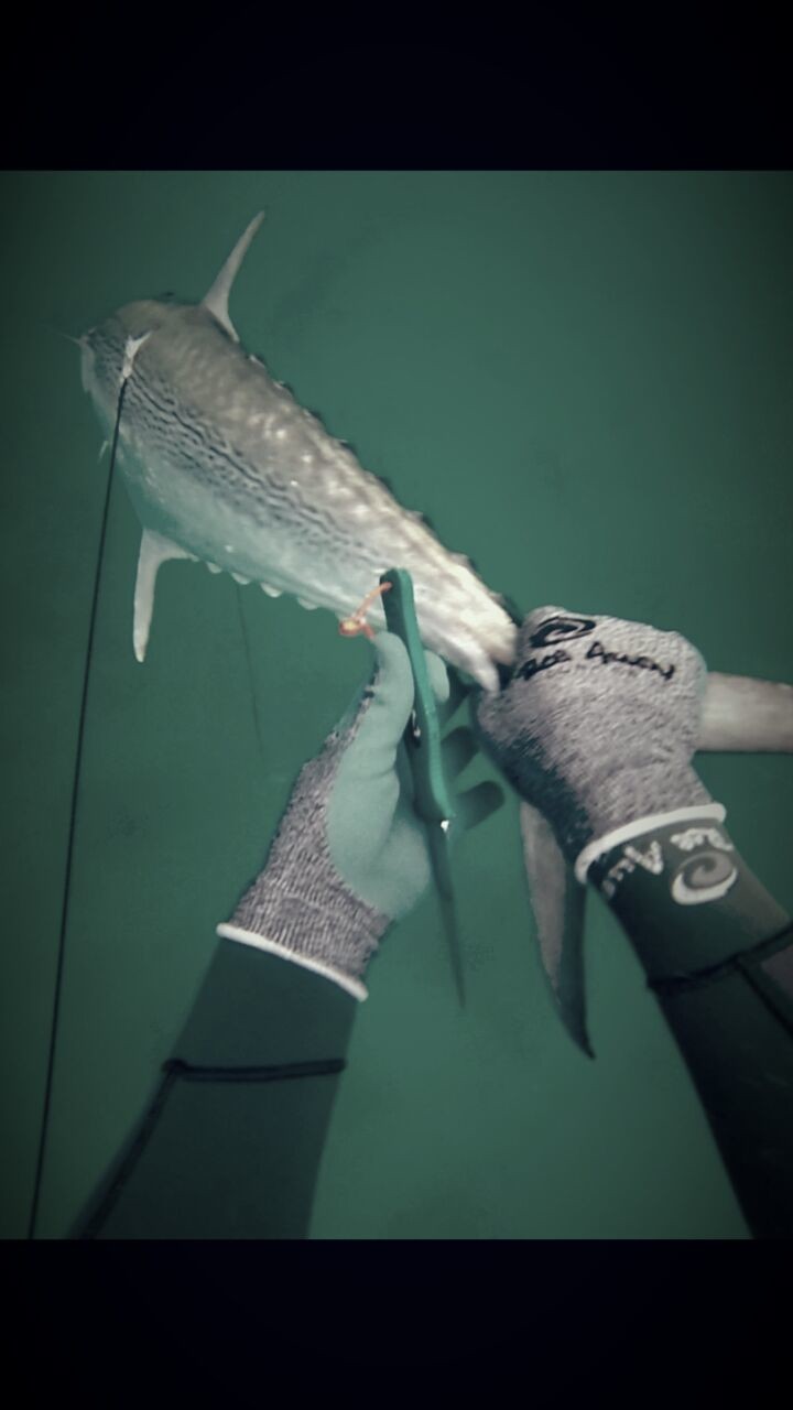 Flipper (sorry!) loves to hang out and even get a free feed. he knows we have juicy fresh jube-jube mackerel in our live well and can be quite insistent. He is so tame he will eat from your hand! Jumping in with him on a clean day, he really gets interactive…chatting and clicking and squeaking away.