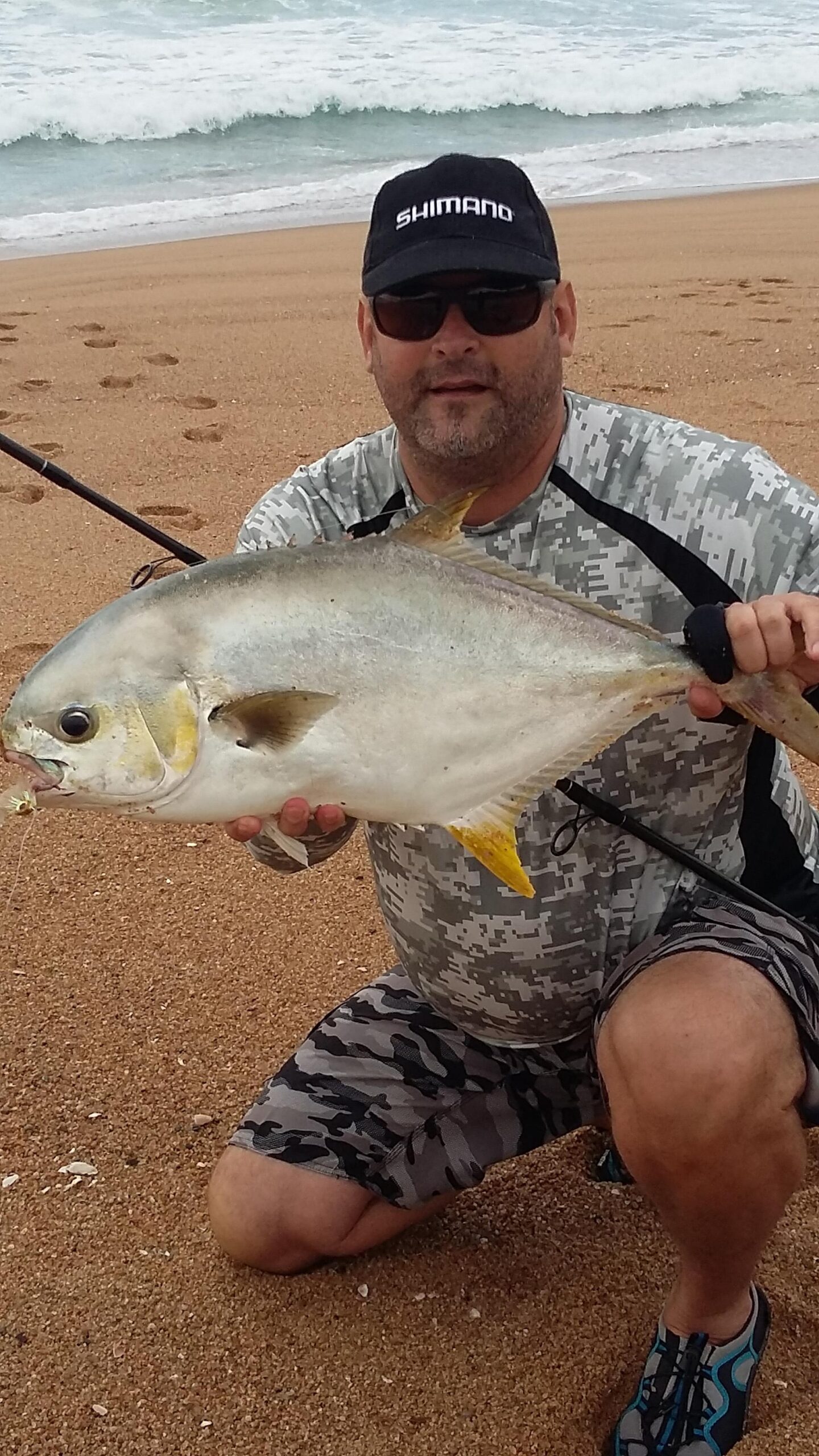 I tightened up on the line reeling more in try to use the waves to bush it onto the beach I finally landed my first Natal Pompano it was such a awsome feeling one you’ll never forget.Not messing around I quickly got a pic holding it,measured it tagged it and got it back to the water and watched it swim off epic always seeing your fish swim off to fight another day.Remember to let your fish roam free….LET GO LET GROW…..Fish for the FUTURE……!!!.