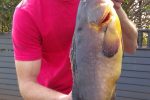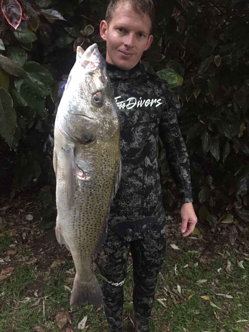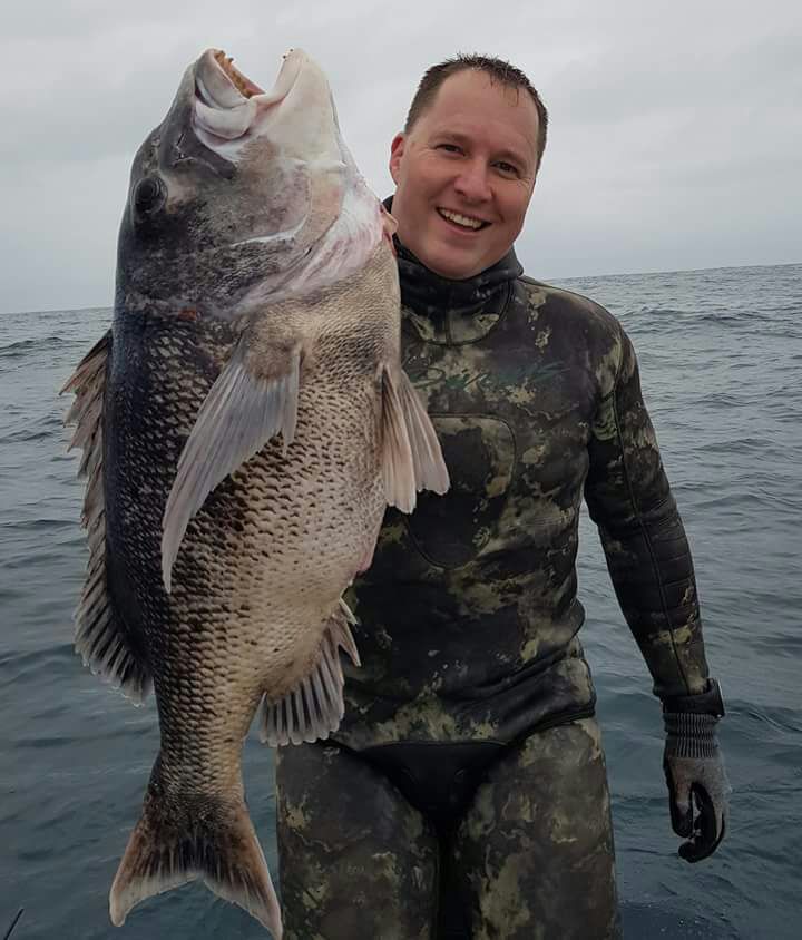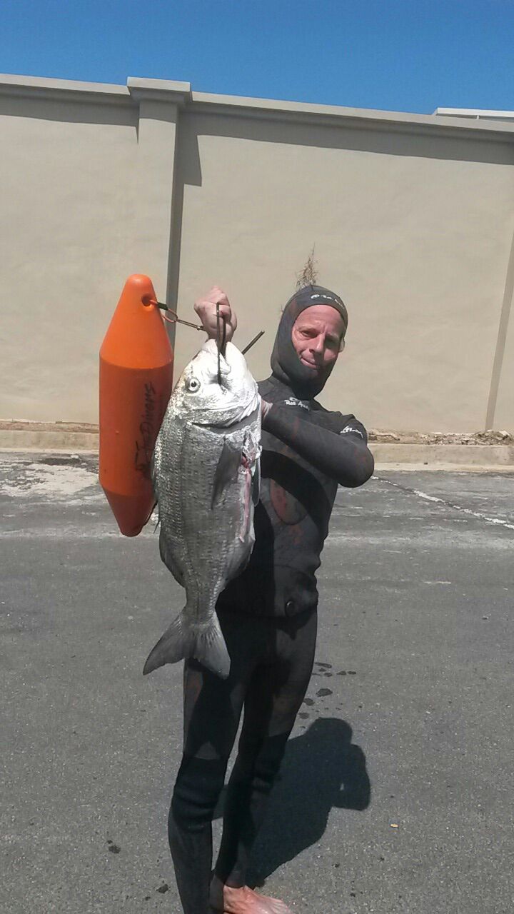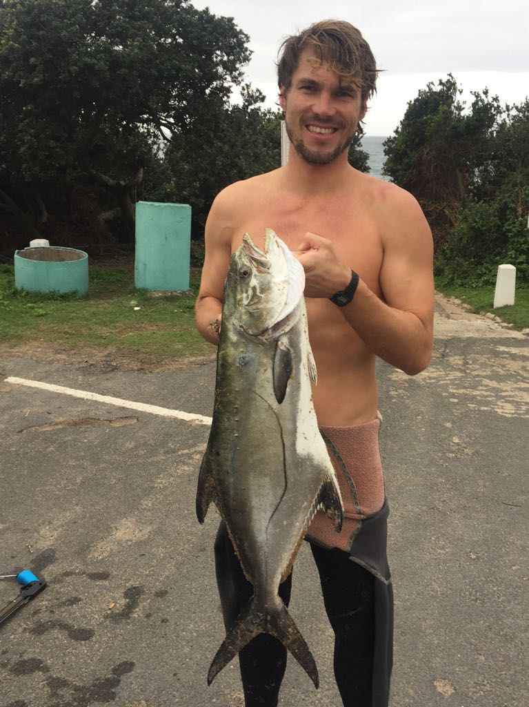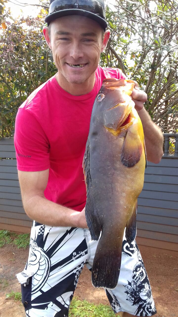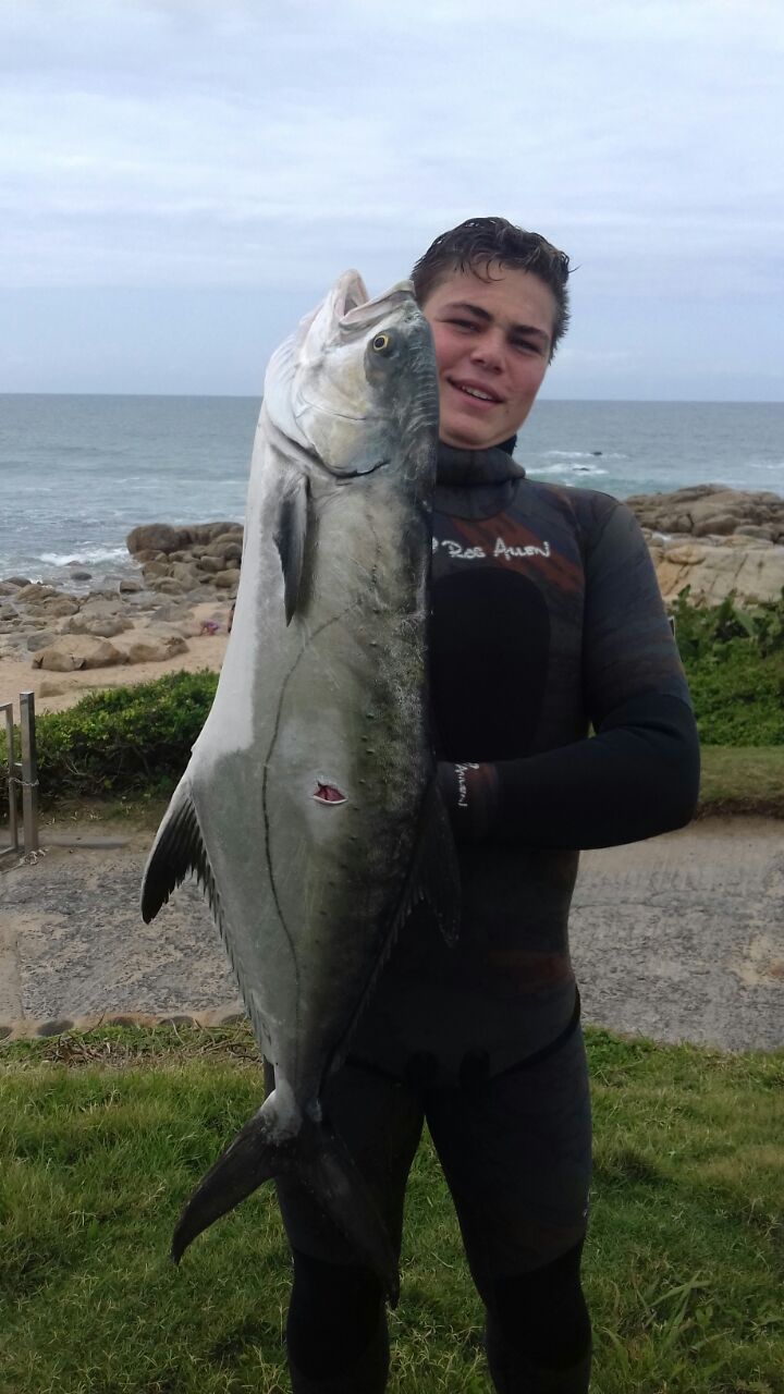 The diving conditions this week have been below average with only one or two days being divable. Big brusher and daga salmon are around with some small garrick coming out. Saturday a North East blows during the day dropping off towards late afternoon with a swell of 1.6m running. Sunday morning a moderate south West blows with the swell running at 1.3m. So early both Sunday and Saturday could be good for a dive. Biggest fish of the week goes to Garryd with a 45kg wopper Gt and club merit fish goes to Dylan Koekemoer with his 1st decent size yellow belly. As always dive safe and straight spears.