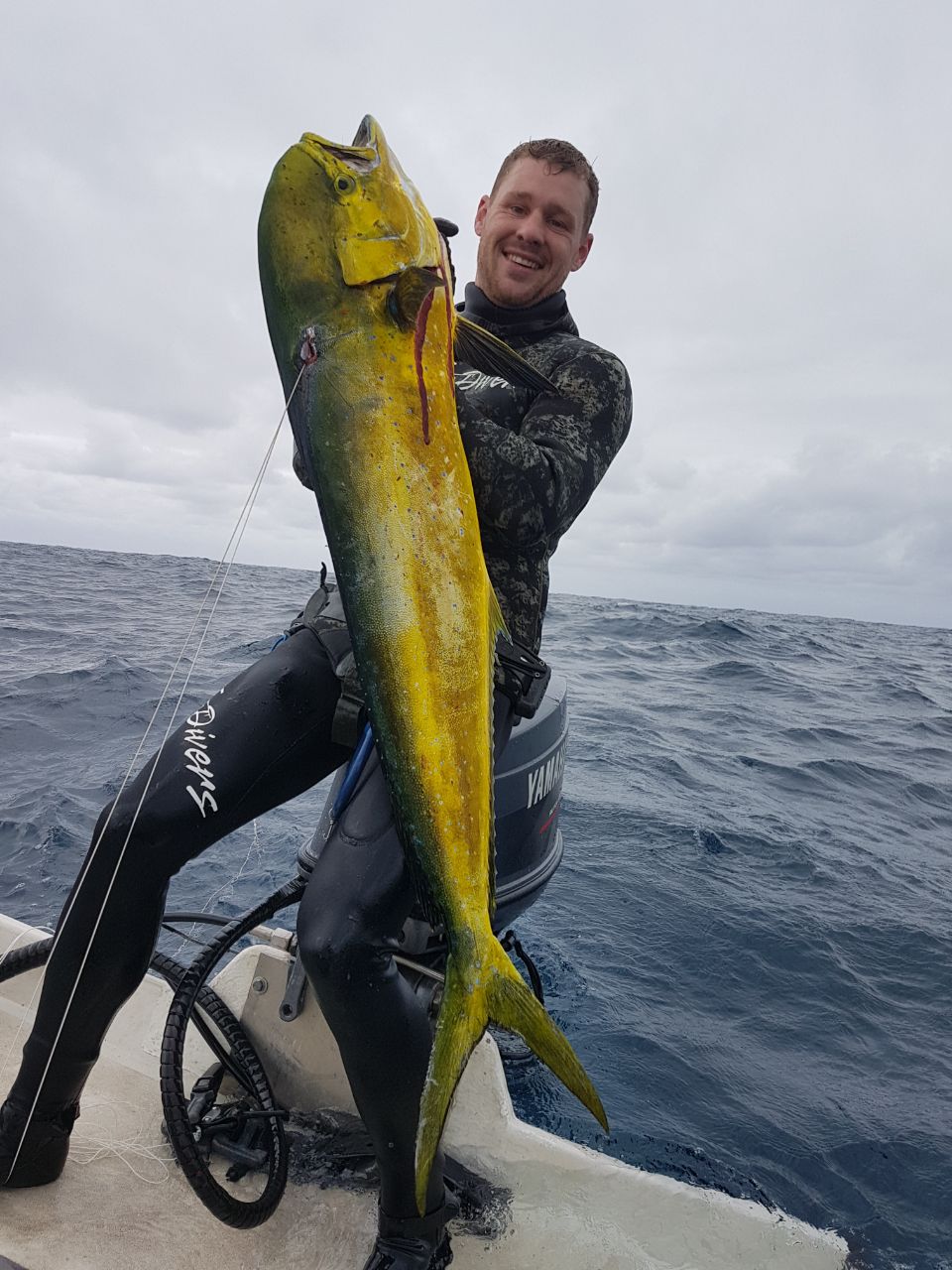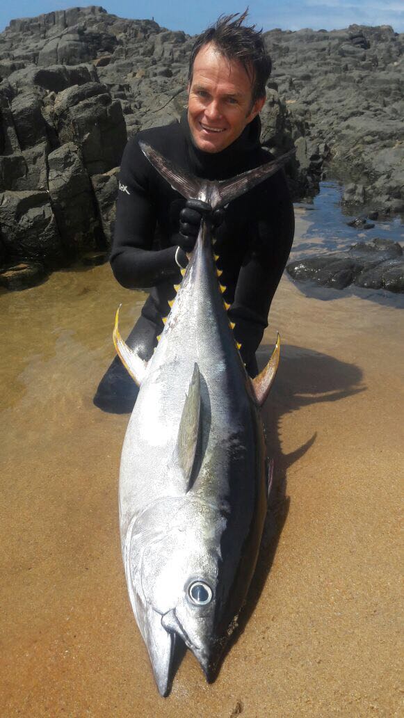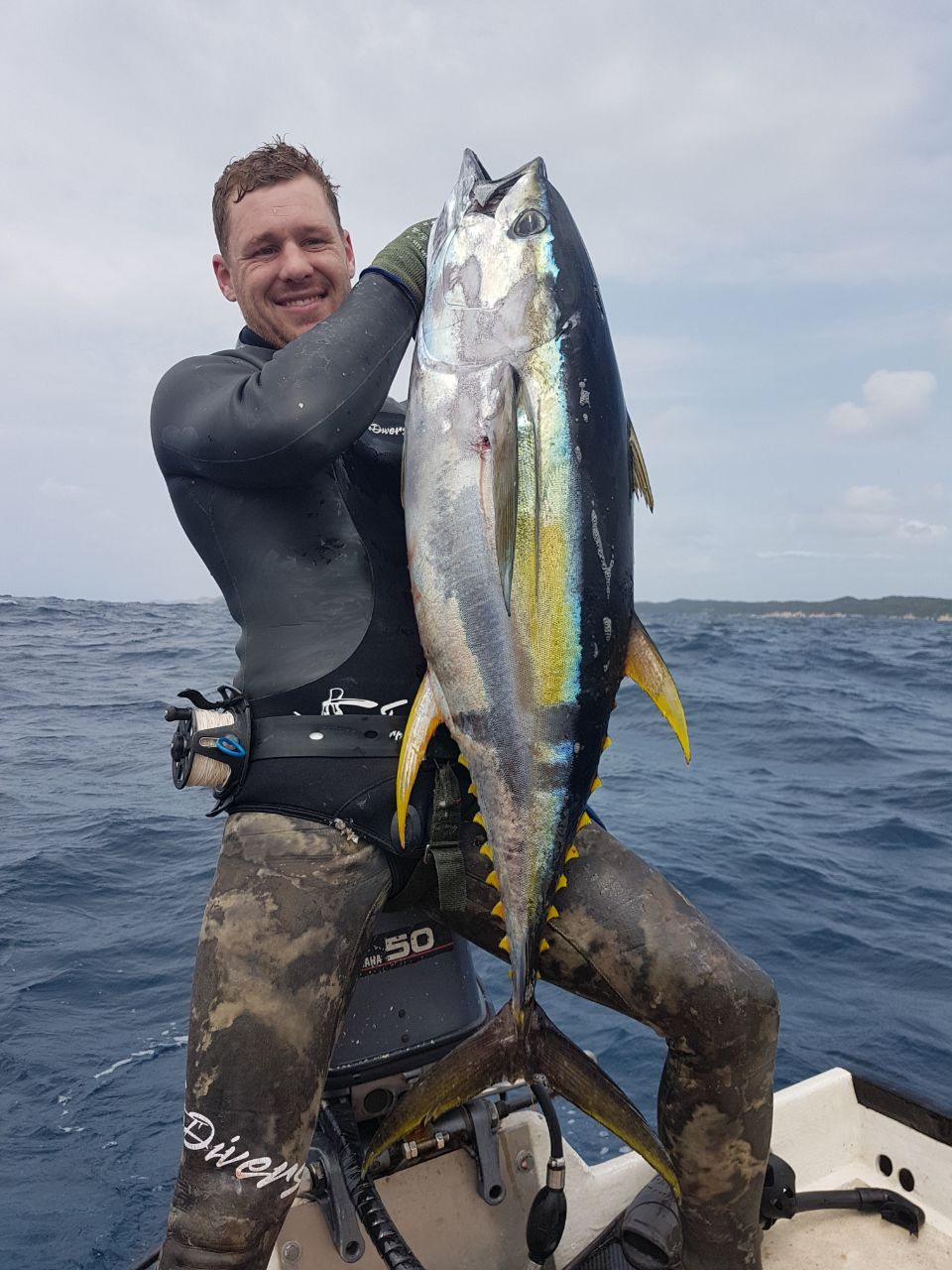 Peter Jacobs spears a 22kg yellowfin tuna in this weeks spearfishing report by Jason Heyne.