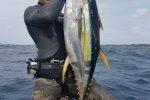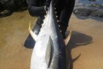 Peter Jacobs spears a 22kg yellowfin tuna in this weeks spearfishing report by Jason Heyne.
