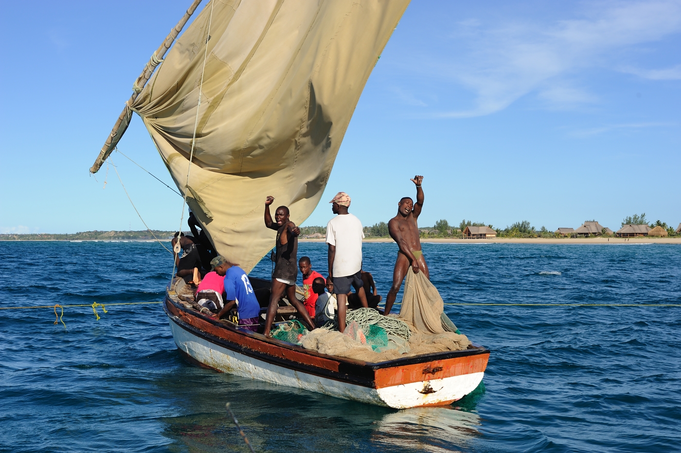 Barra and the huge, but calm Inhambane Bay, is a 20 minute drive away, giving you access to the islands and Linga Linga. Over crystal clear waters you cruise, spotting starfish and all sorts on your way. Great snorkeling. Fishing too.