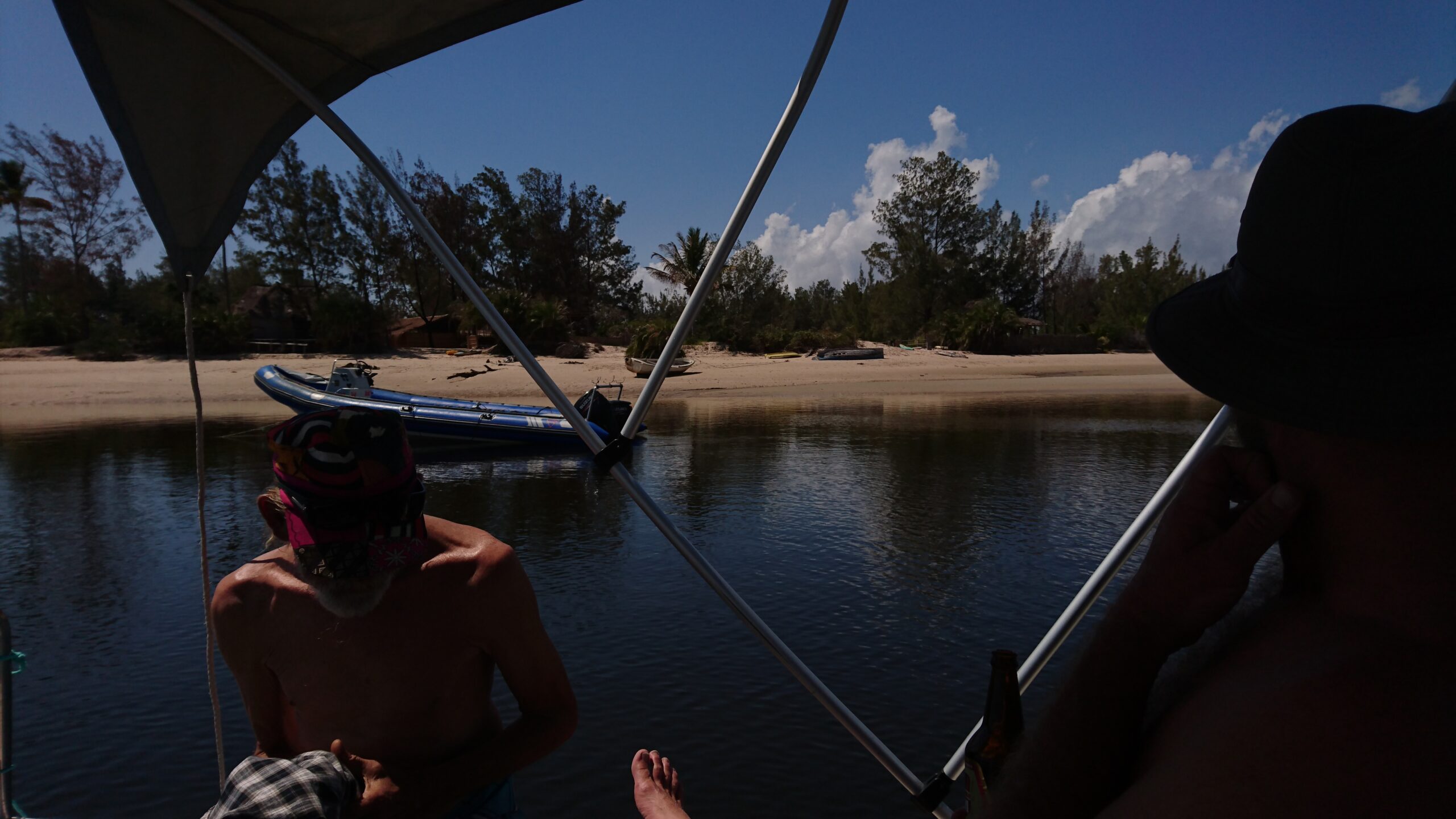 We eat a lot of fish on this trip. And crabs (Mangrove and Blue) Crayfish. Mussels. Oysters. Clams. Sardines. Prawns. Fused with locally farmed veggies. Garlic. Tomatoes. Onions. Spring onions. Even coriander these days! Sathane will cook us a chicken any way we want it, and a goat curry will knock your socks off. Our crew are all great chefs and things like Tuna Bolognaise (minced fresh tuna loins) will have you forgetting about meat completely. However, the nearest town on the EN1 road, is Massinga. A busy little strip of road that has restaurants and more comprehensive loja’s. Even the odd chinese shop. And a garage. Cellphone shops. An impressive scene after being way our into the wild.