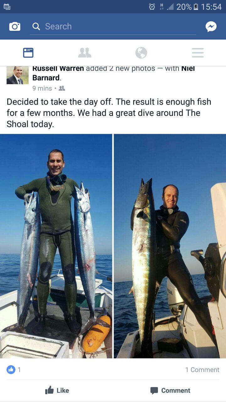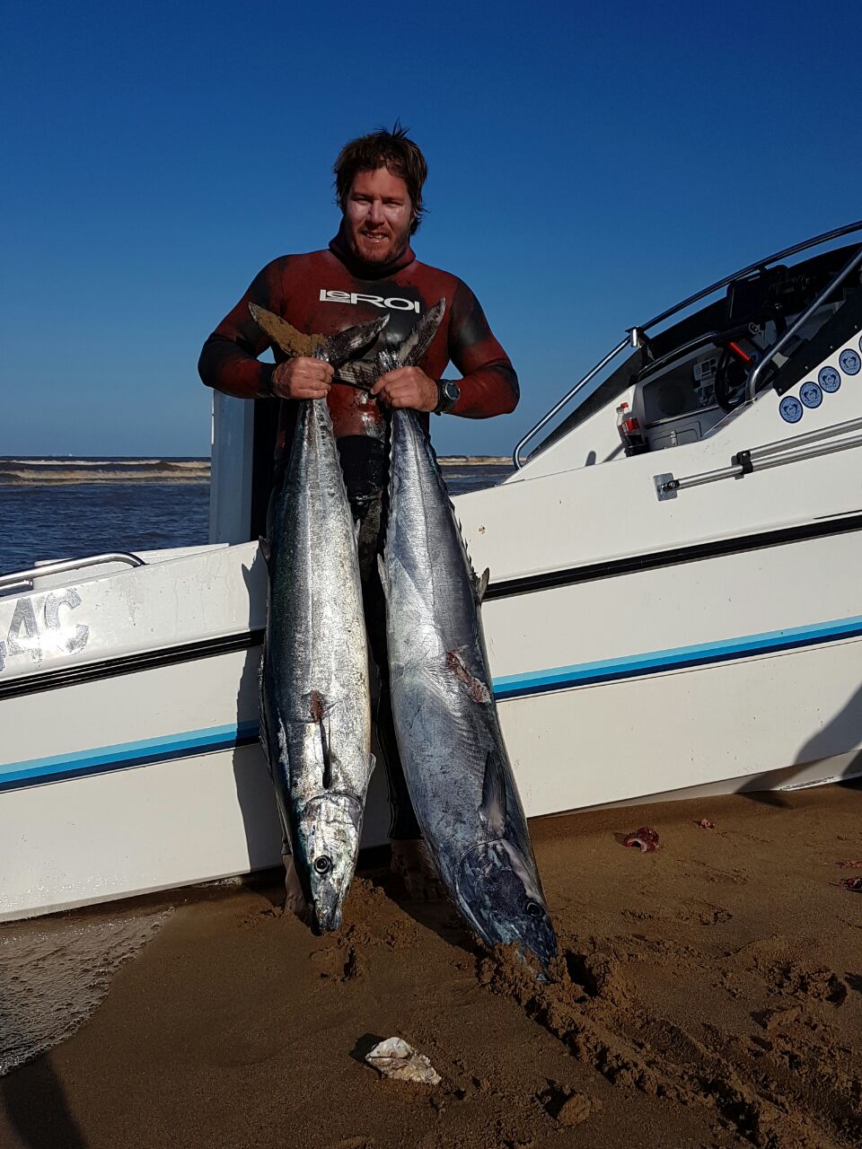 The diving conditions this week have not been great inshore but deeper spots like Aliwal have been working well. Plenty of big wahoo and some smaller wahoo with the odd geelbek. Saturday and Sunday light variable wind and minimal swell so both days are good for a dive if you can find clean water. Well done to Marcel Ten Hooren Boer and Markus Potgieter on getting tied fish of the week. Markus got a 23kg dogtooth tunny and Marcel got a 23kg wahoo. Well done to the SA team for dominating at the World spearfishing champs! As always dive safe and straight spears.