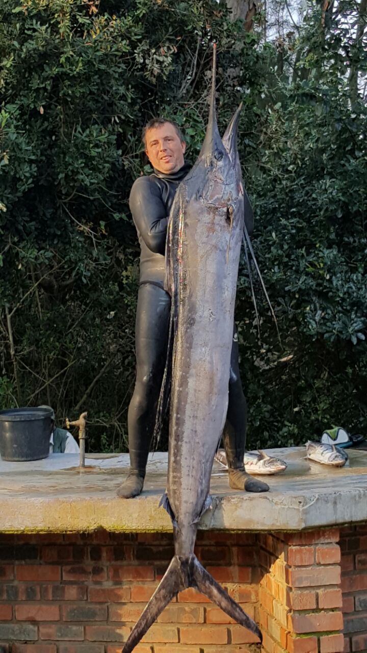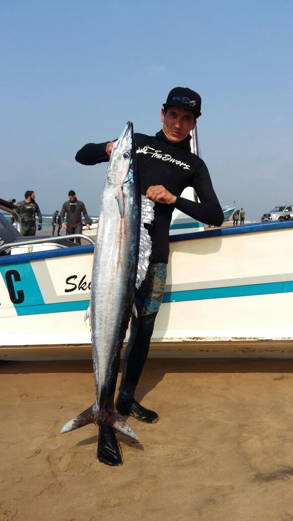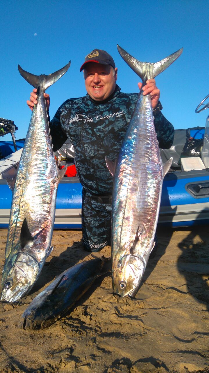 I have had no decent viz reports today. We have several low pressure systems sitting in the southern Atlantic and combimed with spring tides and a cyclone off Madagascar we have really bad weather on the way. This weekend looks a blowout for diving with big swell still hitting the north and south coasts tomorrow we have a late south west blowing from mid day right through to Sunday midday. Swell is gonna be on the larger side so caution is advised on entry and launch. Great weekend to catch up with the family. The vidal comp was a blast. Well done kobus delport on getting a 16 kg wahoo for 1st place. Thanks again to our generous sponsors Freedivers International and Rob Allen without you guys the comp wouldn’t be half of what it is. From Monday we will be experiencing large cyclone surf for a few days. Snoek garrick and daga salmon are around with the odd geelbek and grunter being landed. As always dive safe and straight spears.