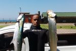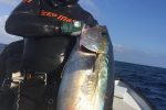 Sea conditions this week were average until the storm on Wednesday night bringing the rivers down and clouding up the sea. The sea is settling nicely today (Friday) with the swell dropping off and a light north east blowing. Some viz was reported north coast and middle south coast. Saturday morning early a moderate south west wind is set to blow with the swell picking up. Sunday the swell drops off in the morning and picks up towards the afternoon with a north to north east picking up speed during the day. So it looks like early Saturday and Sunday mornings are looking good for a dive. Snoek and king mackerel are still around. A lot of yellow fin tuna are being seen and prodigal sons aka cobia are hanging out with rays and big sharks. Well done Garret on getting a saily and hard luck on dropping a big wahoo! As always dive safe and straight spears.