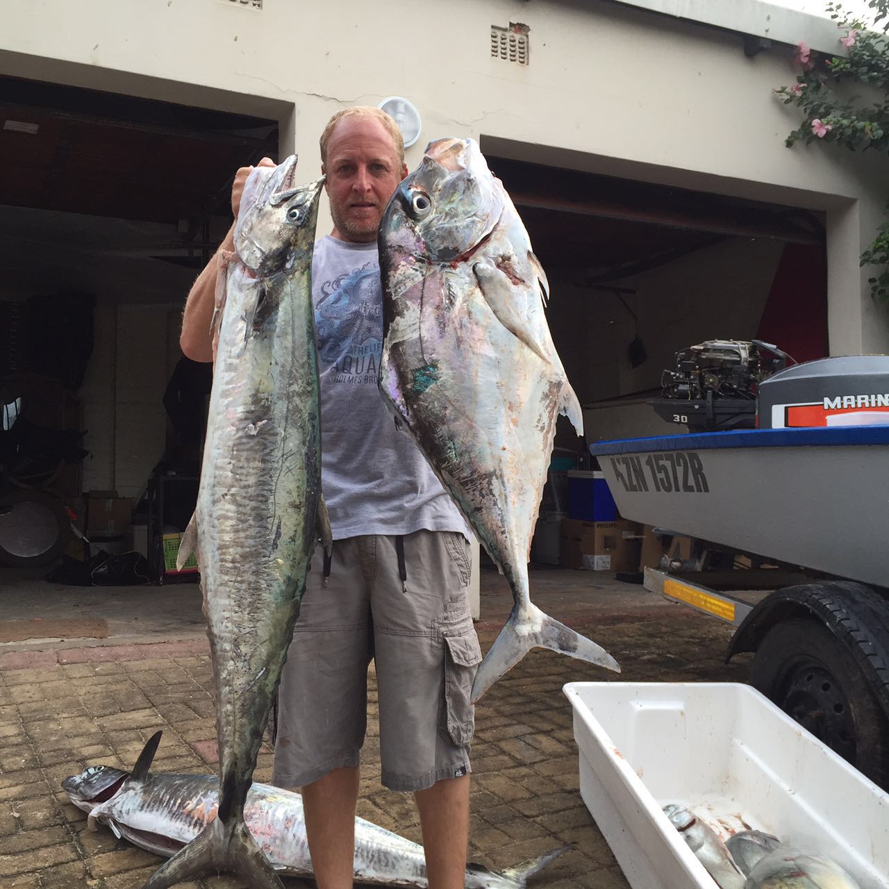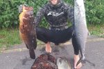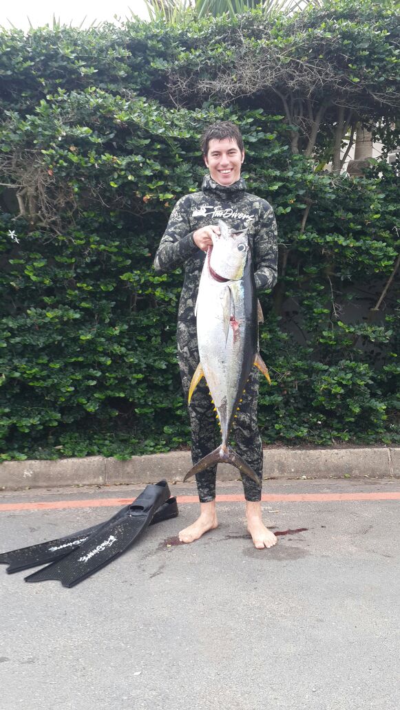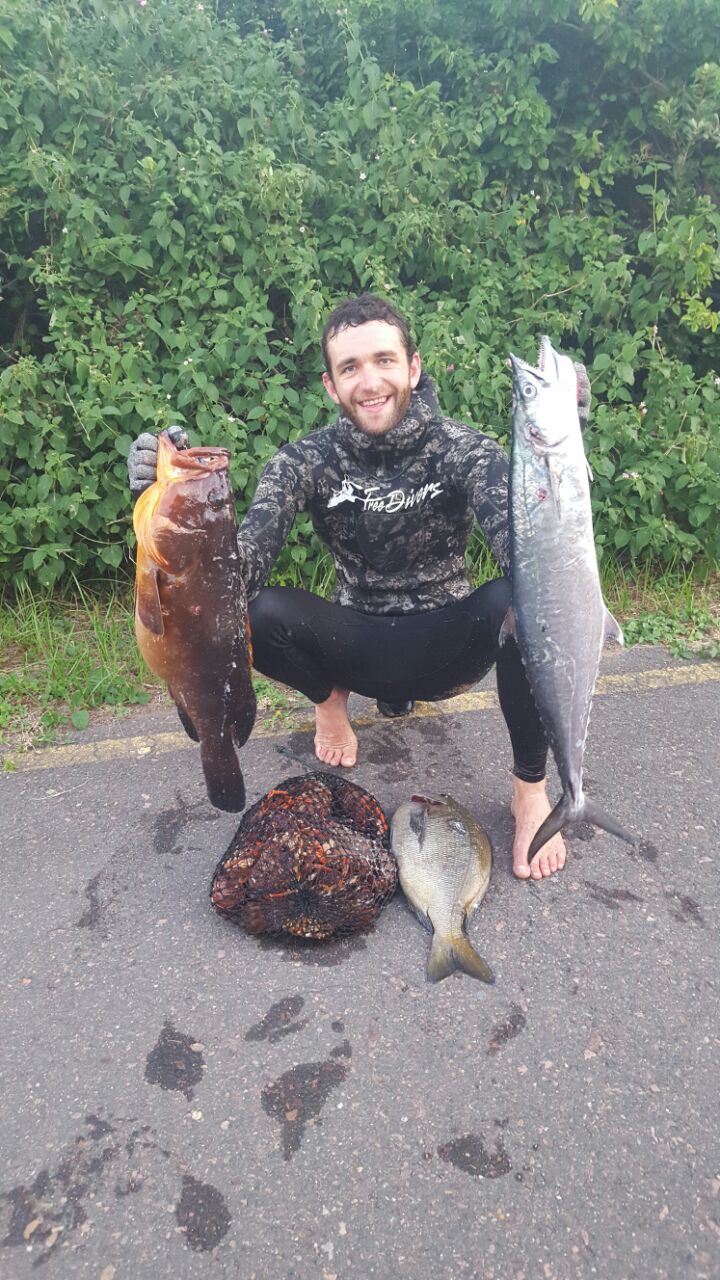 The sea conditions this week have been epic. Flat glassy sea with 1m or less swell running. The bad news is that there is a big cold front heading up the coast from Cape Town caused by a huge low pressure storm over the Atlantic ocean. The South West starts blowing midmorning Saturday with the swell starting at 1m picking up to 2.5m later in the afternoon. The South West dies off late Saturday night. Sunday morning there will be a large heavy swell running at 2m with a moderate north east picking up by lunchtime and obliterating the sea. So Saturday morning early is the best bet for a dive. There is good viz on the north and south coasts. Cuda and snoek are still on the north coast with some fair size gt’s around. South coast some early small garrick have been seen and there are some daga salmon out deeper. The wahoo are still on the Aliwal shoal. As always dive safe and straight spears.