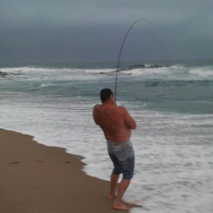 I had been invited to spend a weekend down the South Coast at a place called Cracker Bay just outside Hibberdene at a mates cottage right on the beach; an opportunity I could not turn down. I had fished the avie at Cracker Bay after unpacking and settling in with the family but with no luck. Friday night went and it was Saturday already, early morning had arrived and I was on the beach around 04:30. Being summer the sun rises early, as it is the best time of the day to fish for those predators lurking in the shallows with a pushing in tide. I had my 11ft Loomis X/Heavy fitted with a Sustain 5000 and Gosen 25 lb Braid with a 1 meter Fluoro Carbon Leader 30 kilo strong.