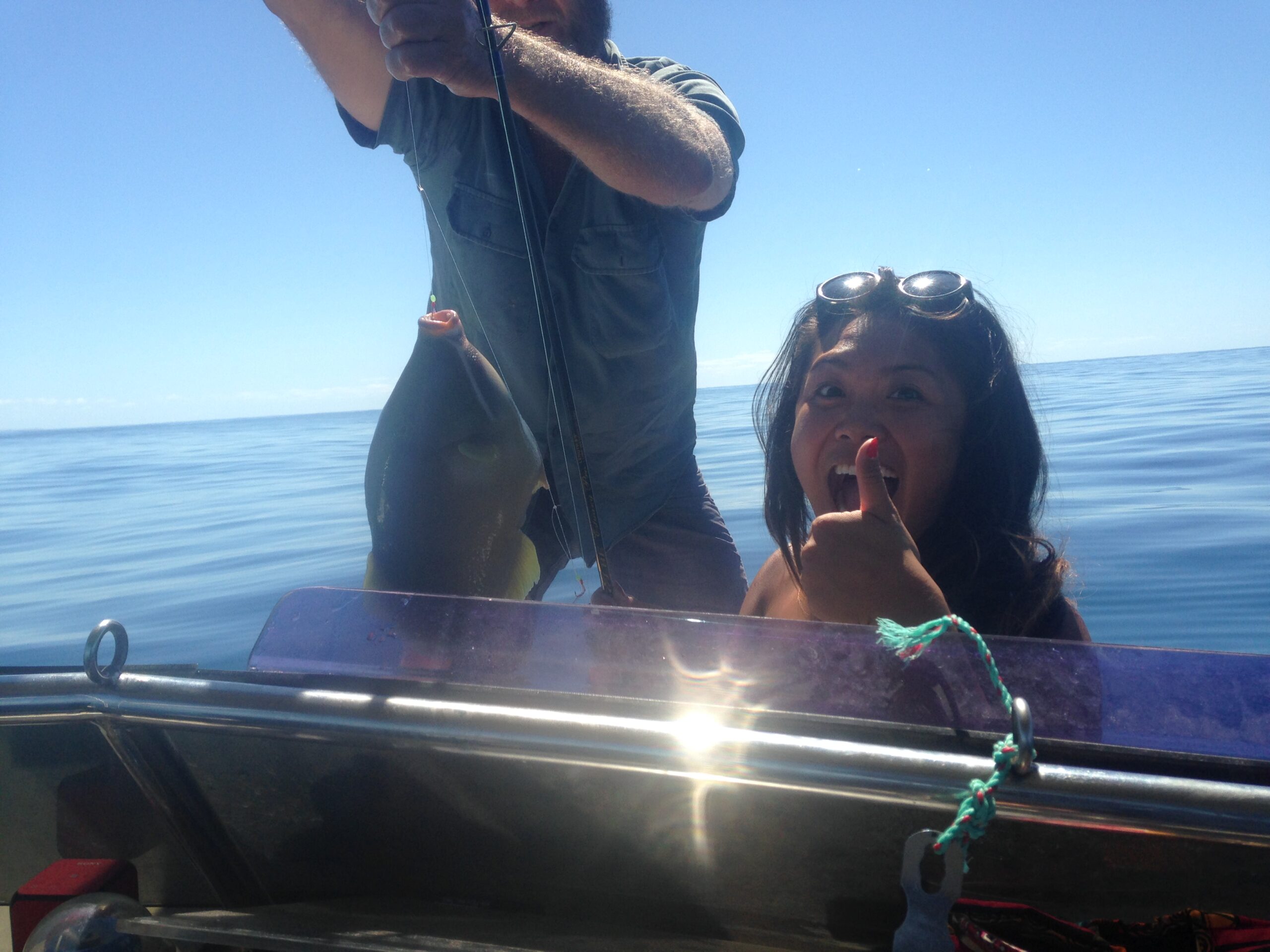 The next was deemed fit for travel, and at 4am, we repeated the ritual, and headed back out to sea. Again we stopped at The Sylvia Shoal, stuck out a whiting on a MYDO, and as we came up the side of the undersea mountain, a lovely swallowtail rockcod chomped it and we had fish for dinner, once more.