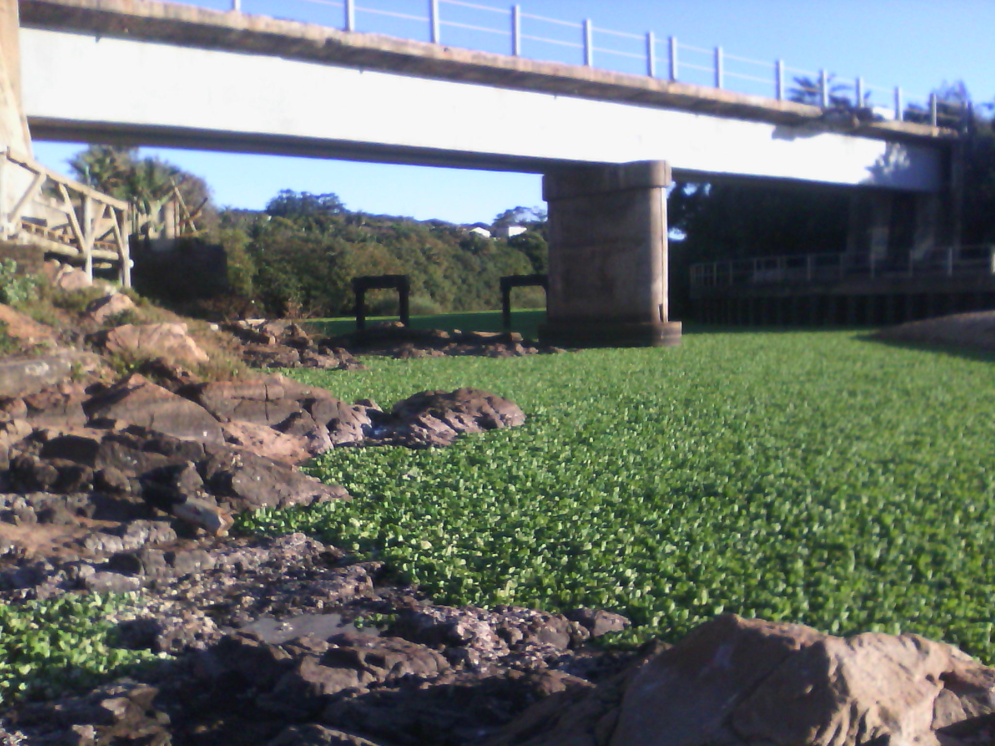 An early morning surf check at Banana Beach on the lower south coast of KZN, saw the entire, once functioning and beautiful estuary completely throttled by a water hyacinth species. Not one square foot was open to the early morning sun. And the tiny fish that were left were grappling for a breath in amongst the tightly packed floating plants. The bigger mullet had long since jumped onto the rocks and surrounding beach, as they desperately jumped in search of a last minute reprieve, a known mullet behaviour.