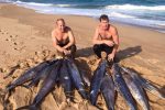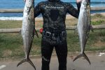 The diving conditions this week have been below average with cold water and fish being sporadic. Some good fish did come out though. Saturday the east blows from early morning and the swell runs at two meters plus. Sunday we have more East with the swell dropping off later in the day. So it looks like it’s a family weekend. Well done to Bryce Buis on getting fish of the week a 37kg GT and Marco Van Wyk getting club merit fish a decent Croc couta! As always dive safe and straight spears.