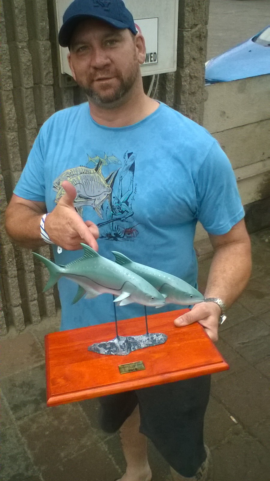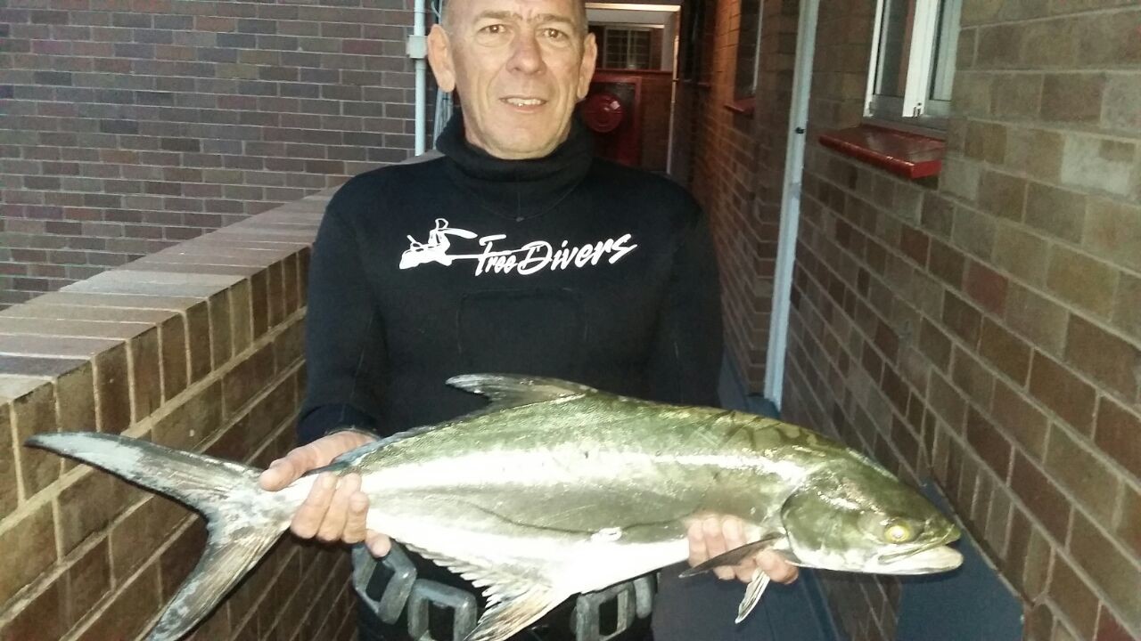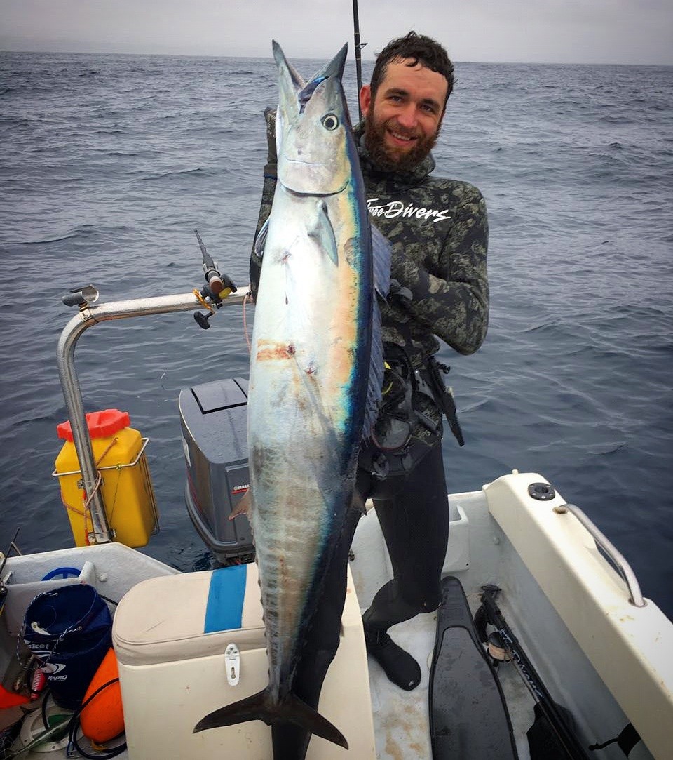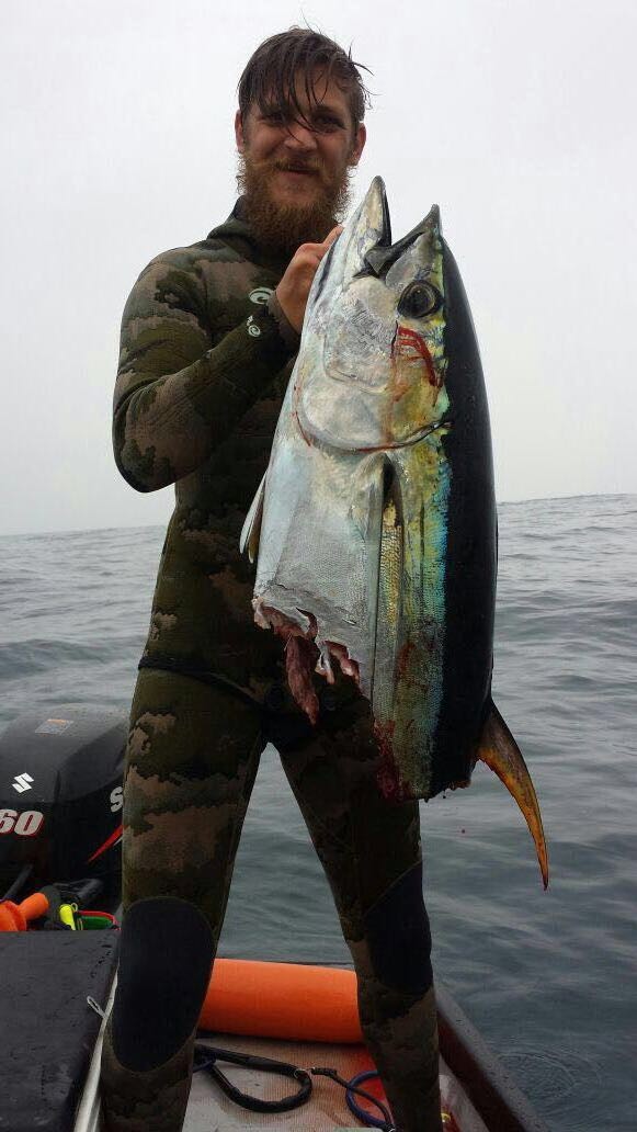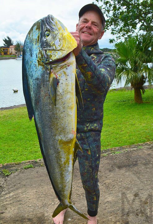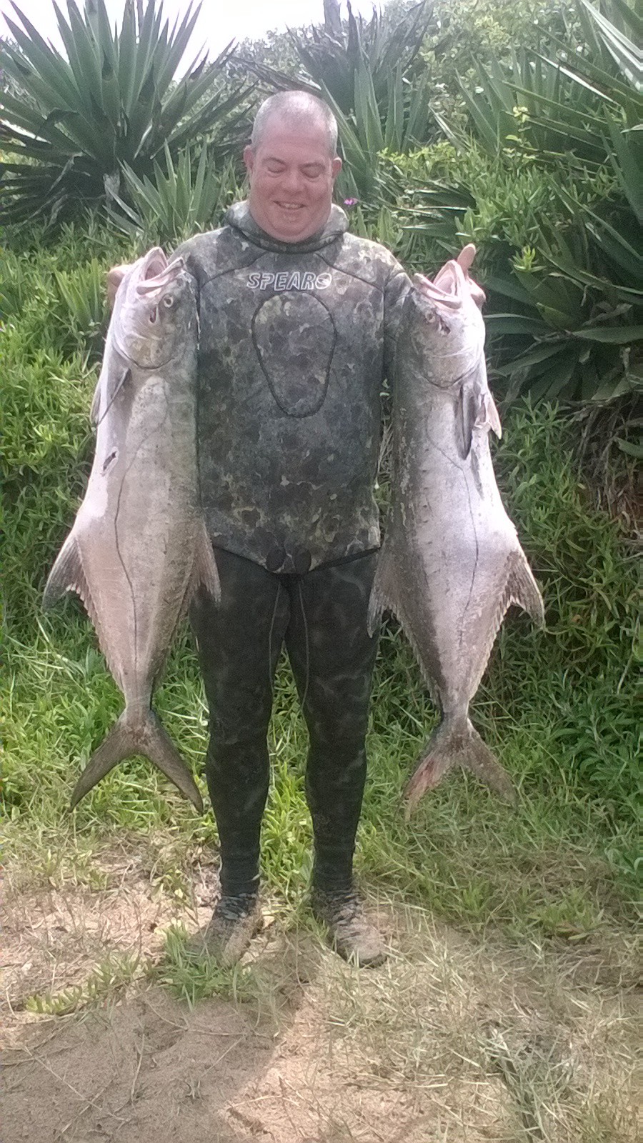 The diving conditions this week have been average with one or two really good days. Really big natal snoek and average size couta have been coming out. Saturday morning the beast north east continues to blow with a fair size east swell at 2.5m. Sunday a moderate southwest wind blows from the morning on with the swell running at 2m. So it looks like Sunday morning may have a gap to dive if you can find viz. Fish of the week goes to Royd Williams with a 30kg plus GT on a shoredive and club merit fish goes to Marco with a beautiful purple rockcod. As always dive safe and straight spears.