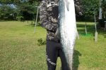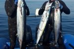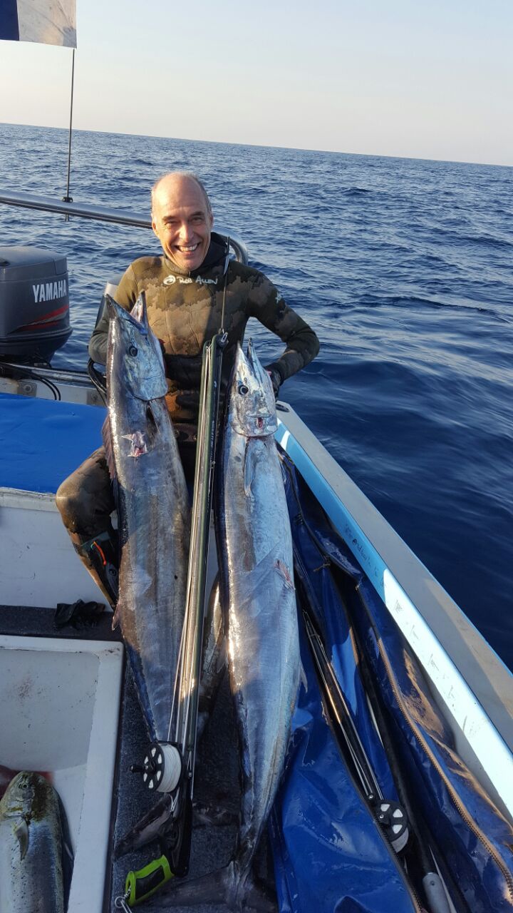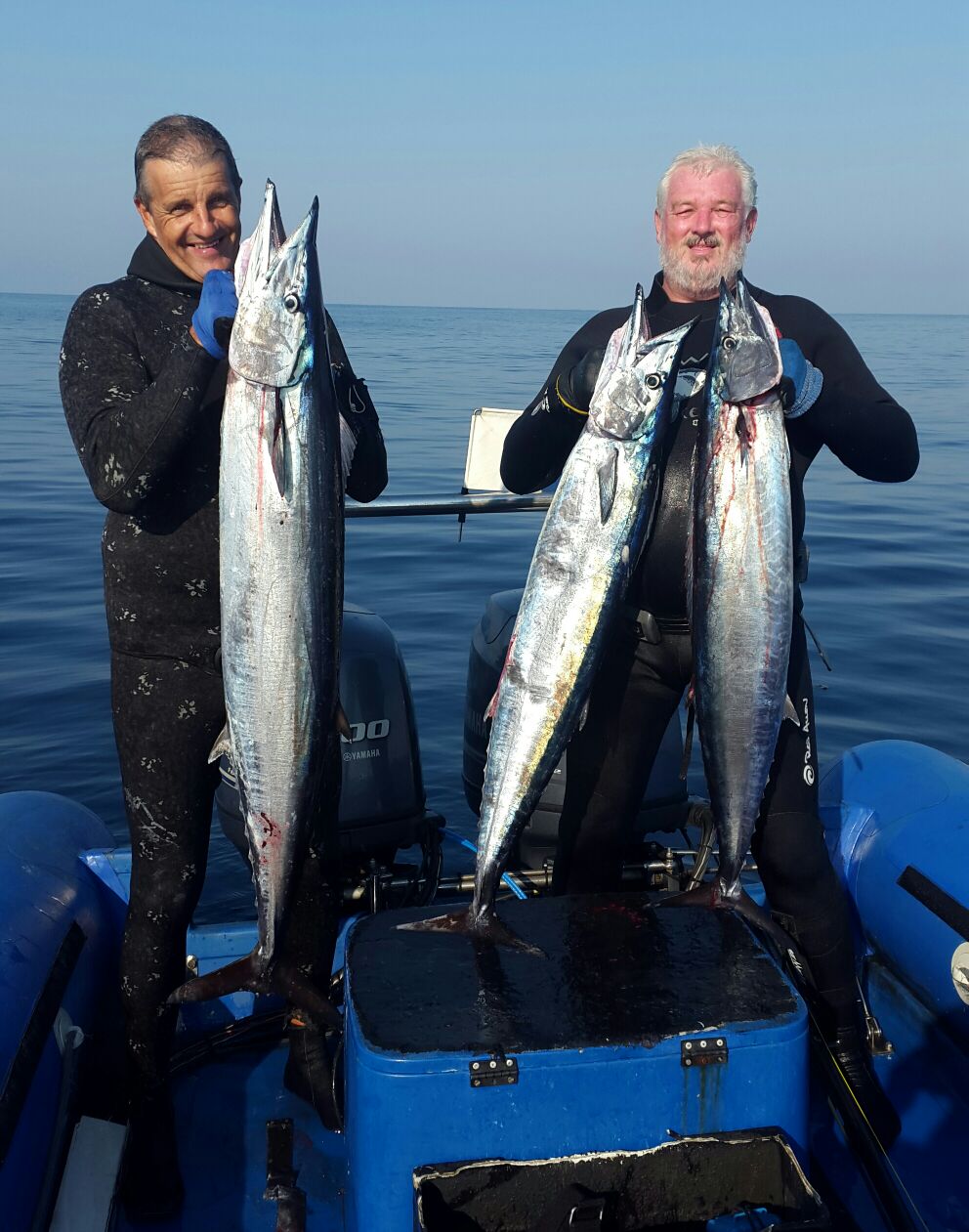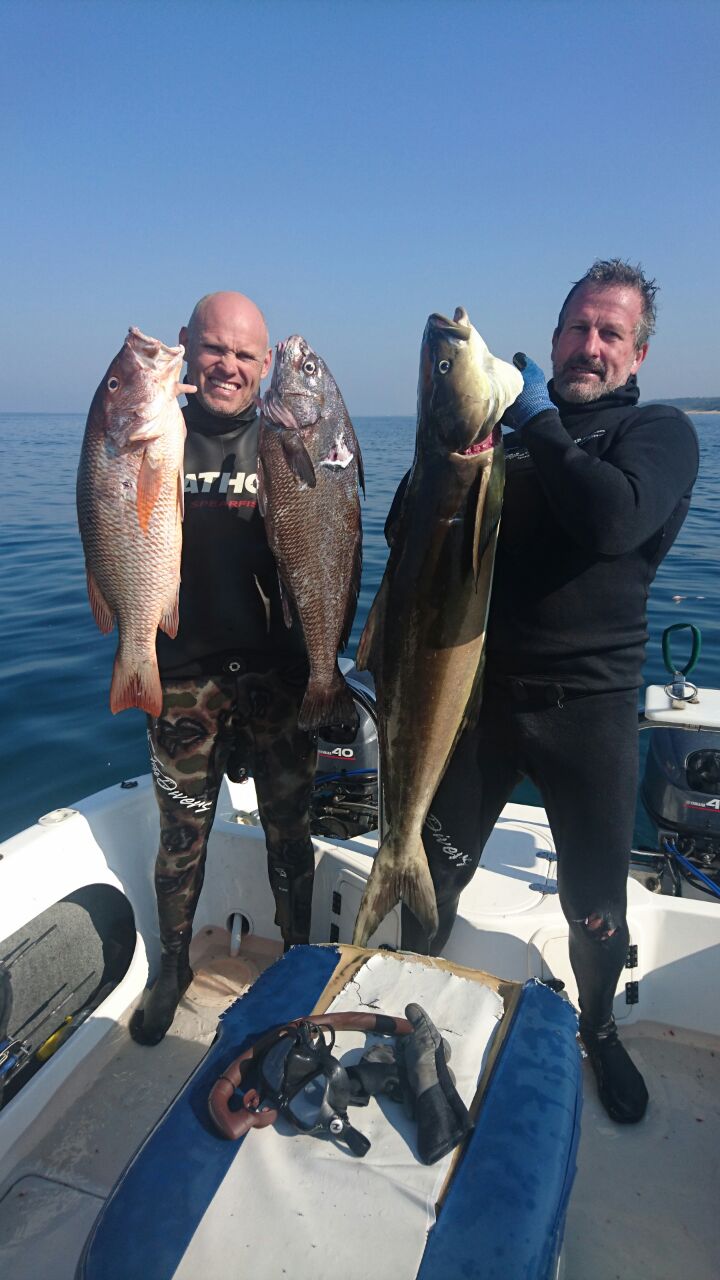 Diving conditions have been average this week with one or two day’s being excellent. Autumn fish are here with shoals of 10kg spannish mackerel around and wahoo putting in an appearance . Saturday a light  southwest blows early switching to a light to moderate northeast later in the day with a negligible swell of 1.3m running. Sunday a light to  moderate offshore blows in the morning switching to a moderate onshore in the afternoon with the swell running at 1.6m. So    Saturday gets100 percent green light for a  dive with game fish switching on as the onshore starts to blow. Fish of the week goes to Luke with a slab of a wahoo and club merit fish goes to Garrett with a bus  Queen Fish. As always dive safe and straight spears.