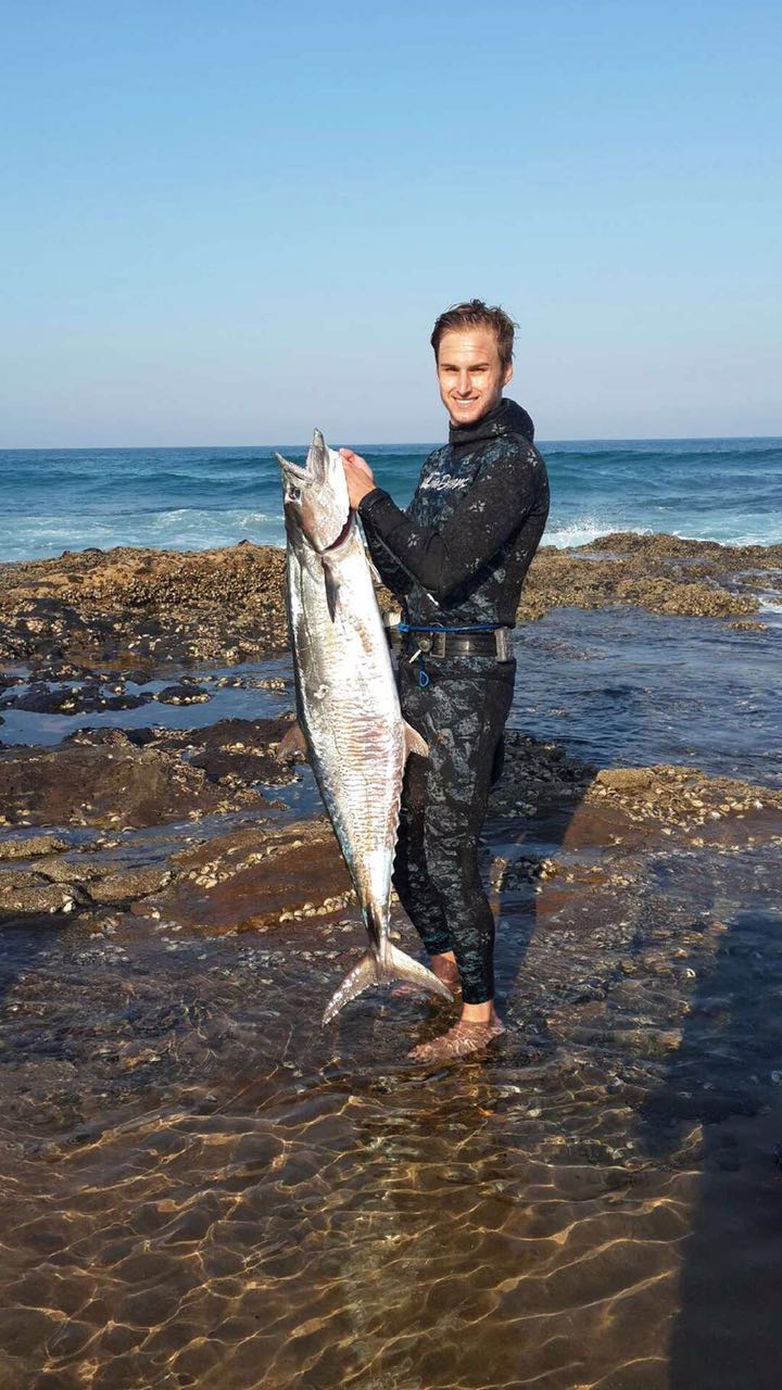 The sea conditions at the start of the week were great then a big north east pushed through on Wednesday which churned the sea up. Thursday and Friday the south west blew cleaning up the south coast. Saturday the swell drops to 1.5m with a light north blowing switching to a moderate north east later in the day. Sunday looks tops with light variable wind all day and a 1.4m swell running. There are big king mackerel patrolling the south coast with garrick and daga salmon starting to make an appearance. Big Natal snoek are back on the north coast. Sunday looks to be the best day for a dive. As always dive safe and straight spears.