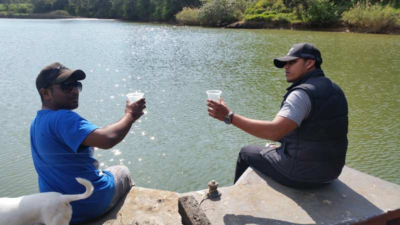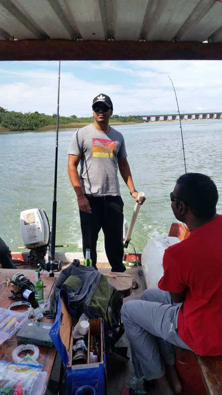After a while, we also had three live baits lolling around in the slack water, and we were throwing the lures for miles in between the baits. I really wanted to keep up my reputation as before, when Kiran asked for a daga salmon, he got two.