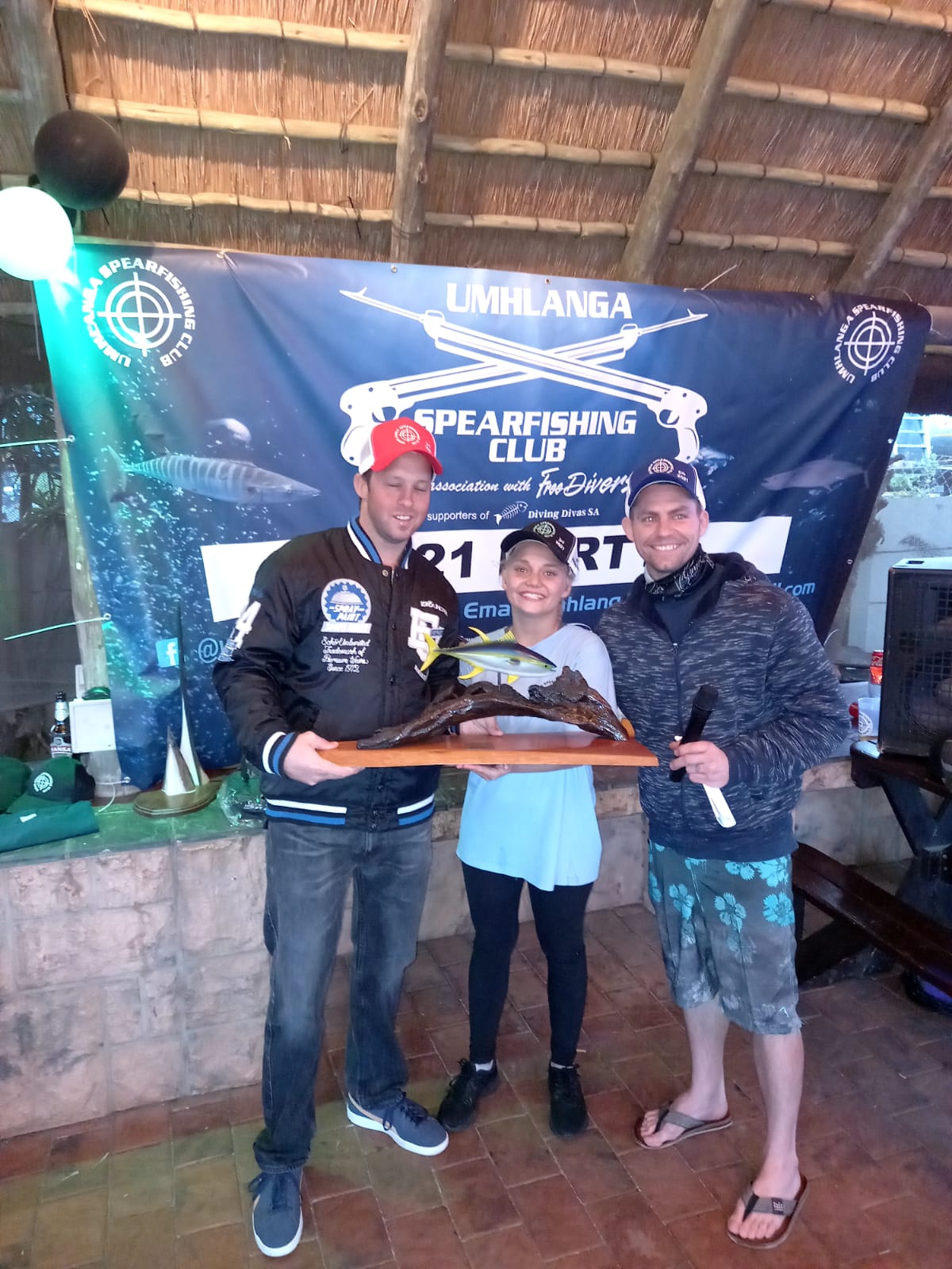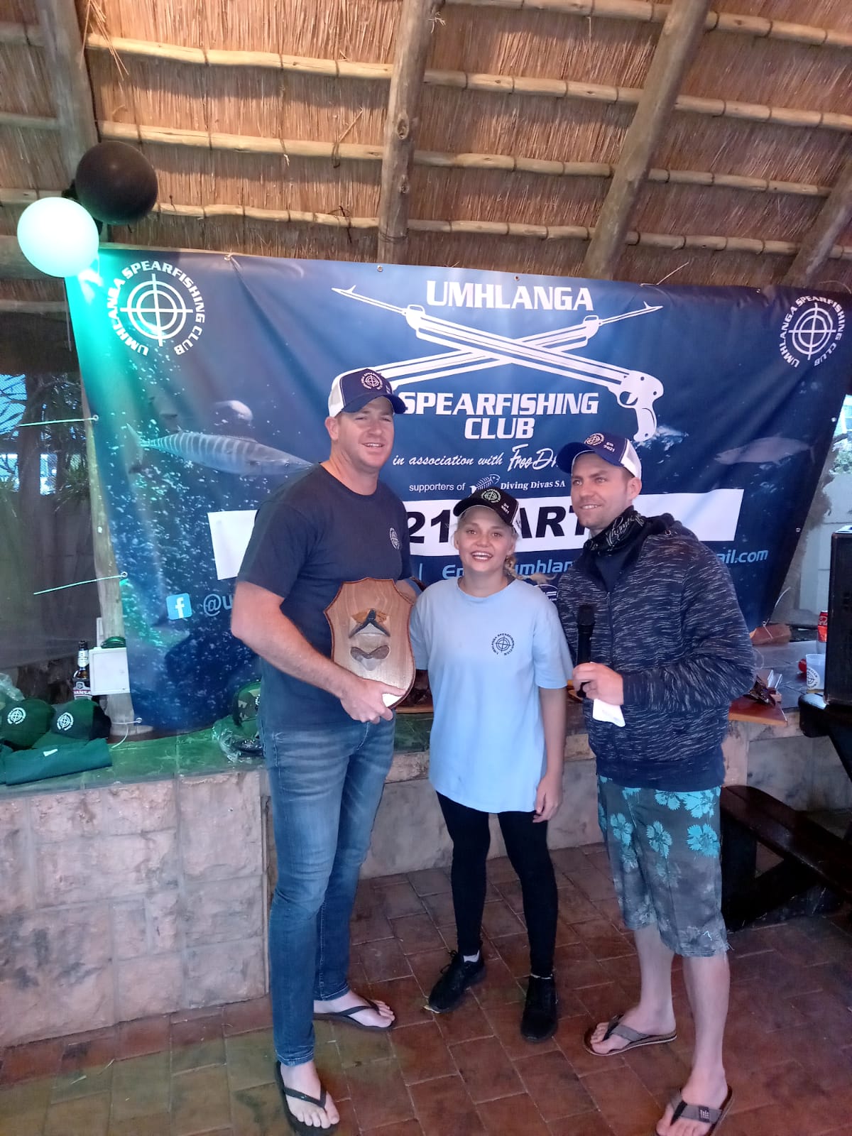 Well done Andrew Hayworth on placing 1st in Club Champs and Master Richardt Botes on placing 1st in the Grand Slam compo! 7 fish out of the 10 selected species is a new achievement for Master Richardt ! Aweh! And well done Diving Diva Taylor-Rose Toich from East London on placing 1st in the ladies Diving Diva USC Champs! Aweh! Great to see ladies joining and growing the Club.