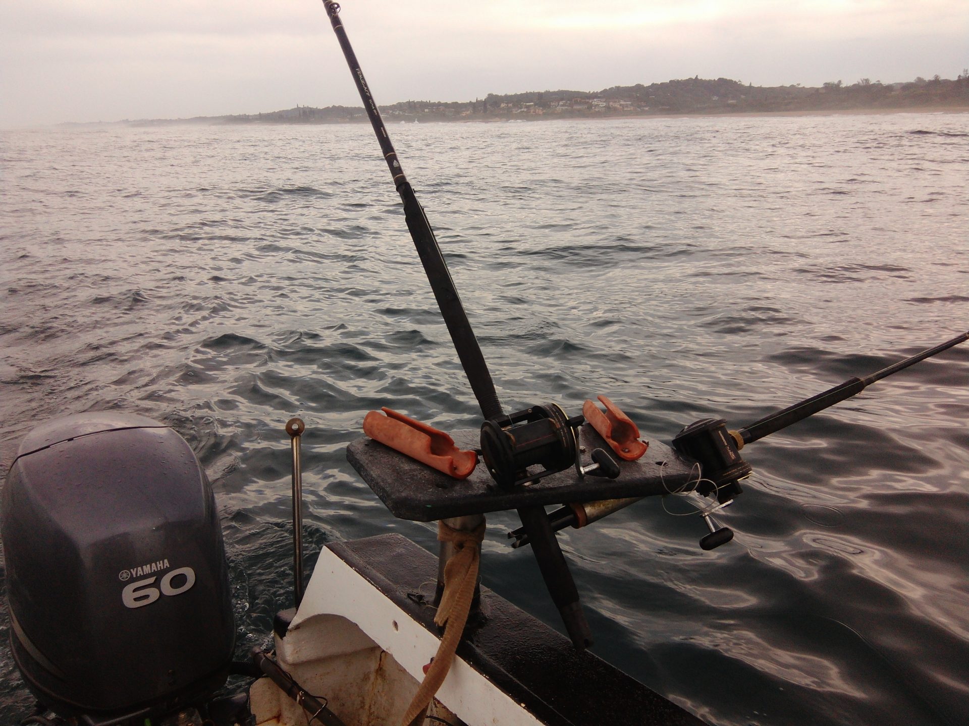 Ansie caught some nice reds and a few barbel, and then the second bait screamed. Not quite as fast, but fast enough to get all excited again, pull the anchor a second time, and give chase. What a fight! It was too strong to be a couta, we realised after 10 minutes. It might be anything the way it darted around and ran so fast.