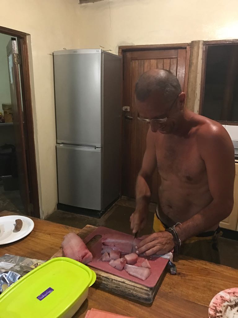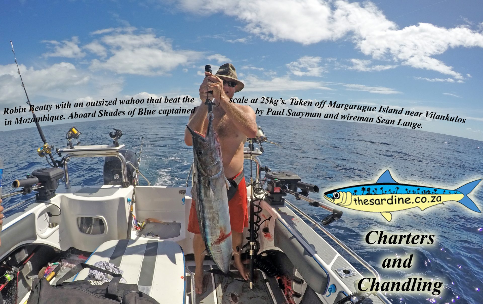 What a privilege to have Seann spend almost 2 weeks with us at Vilanculos in the Bazaruto Archipelago. Shaun is a “reel” talent at everything “Fishy”- Guide, Sushi chef, Line-man, advanced Skipper training and techniques, motor mechanic, navigator, boat electrician, live bait surgeon, fish braai master, passionate conservationist, great humour – absolute necessity in Moz … to have a really good time without taking anything too seriously, Portuguese translator, fuel jockey (one time Sean did not have a beer and almost had withdraw symptoms filling all the containers through a very slow Racor filter) speary guide, lure / kona trolling technician (Yes, a guru at setting out patterns and not getting tangles – and on the one or two occasions that there was a small tangle up, NEVER blaming the Skipper! etc. etc.