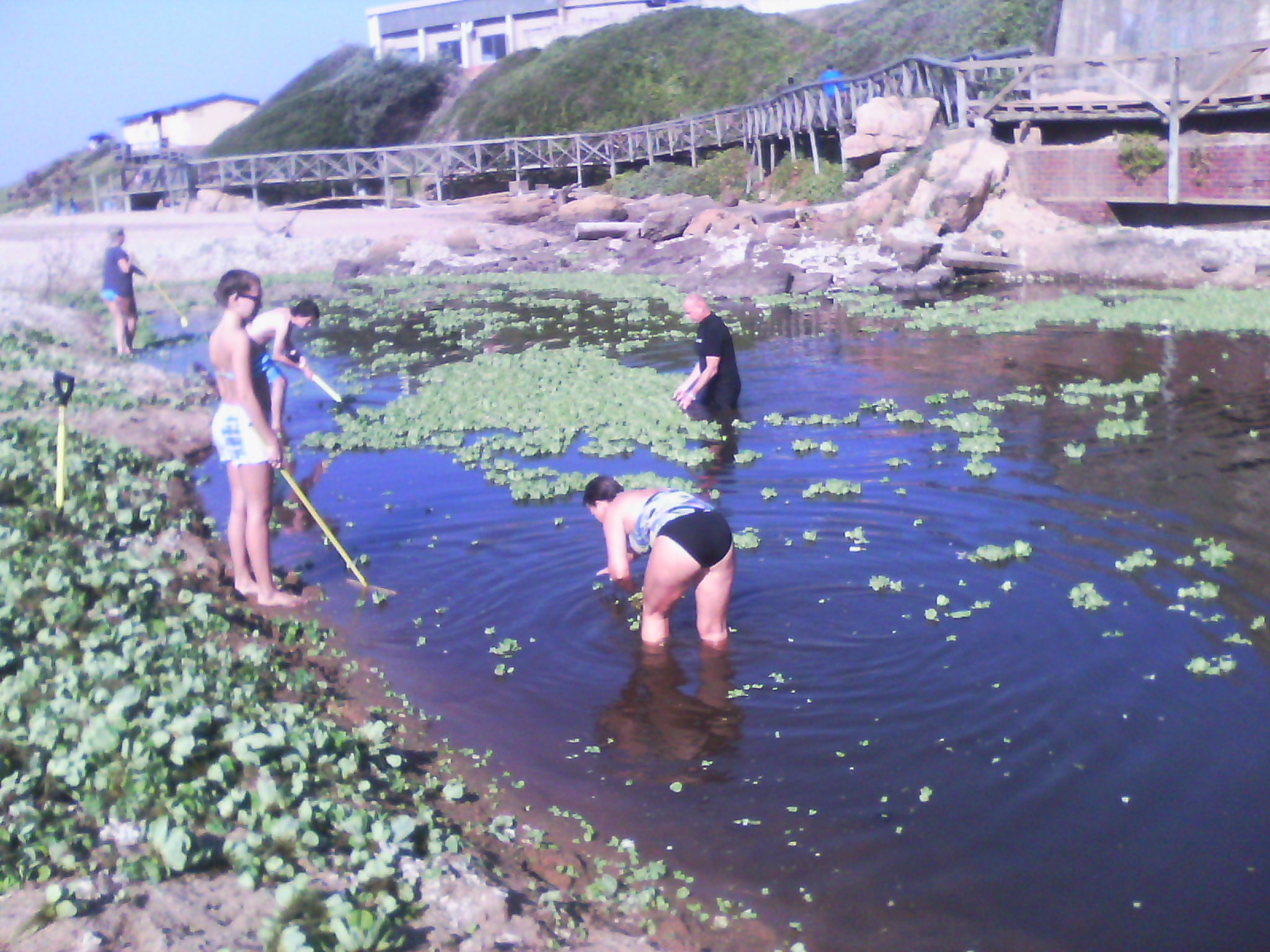 ” I have come to an agreement with everyone and have suggested that 1) no more herbicide to be sprayed, 2) manual removal of plants to continue at estuary mouth, 3) biocontrol agents to be released along the edges of the river a little upstream from where the manual removing will be taking place and 4) an inspection of both the Koshwana and Ntshambili rivers be done to try identify the source of the infestations in both rivers (none of the farm dams appear to be the culprits).