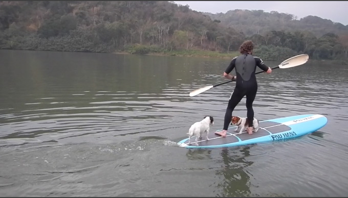 So taking turns, John Fever and I zoomed around the wharf, the dogs insisted on coming aboard, at one stage I had 2 Jack Russells with me. If you know how to surf or skate, or ski I suppose, this is very easy. There is practically no stability problems for smaller guys like me and Fever.